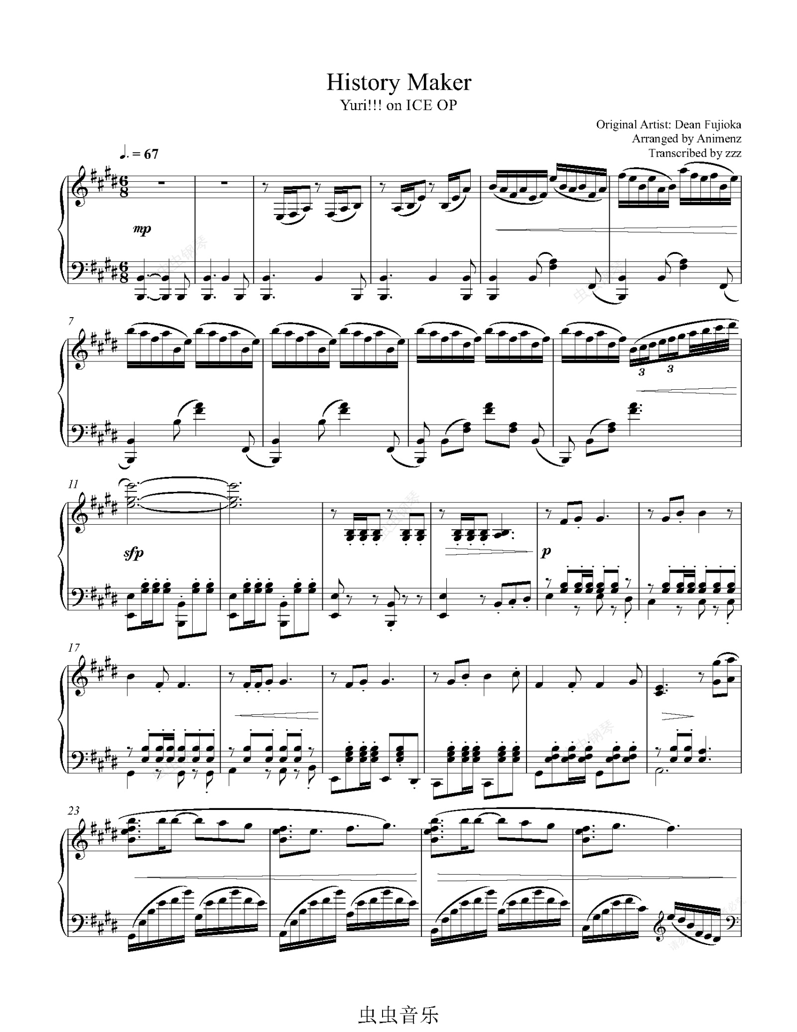 钢琴谱:History Maker 冰上的尤里OP