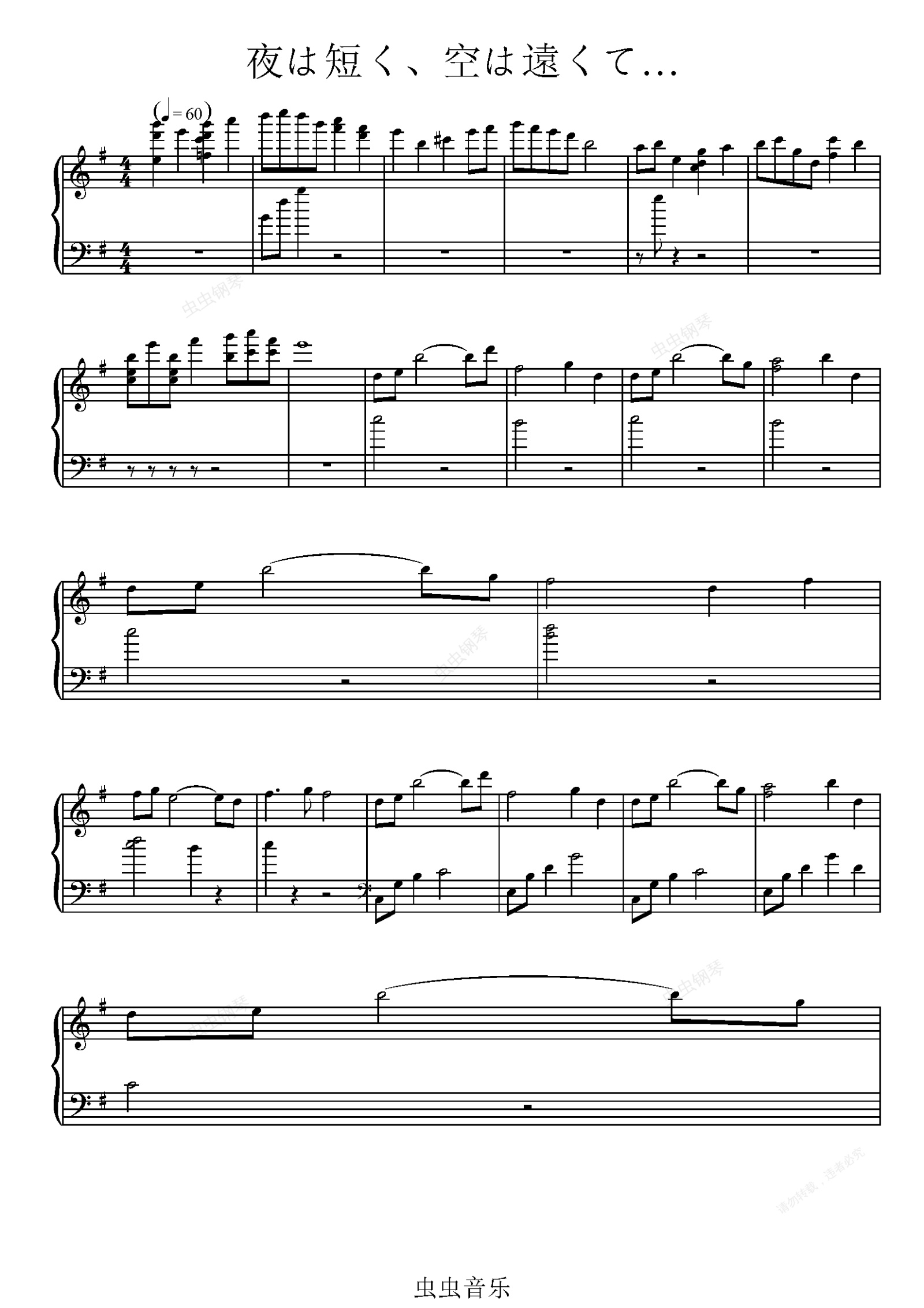 钢琴谱:《summer pocket》夜は短く、空は遠くて…