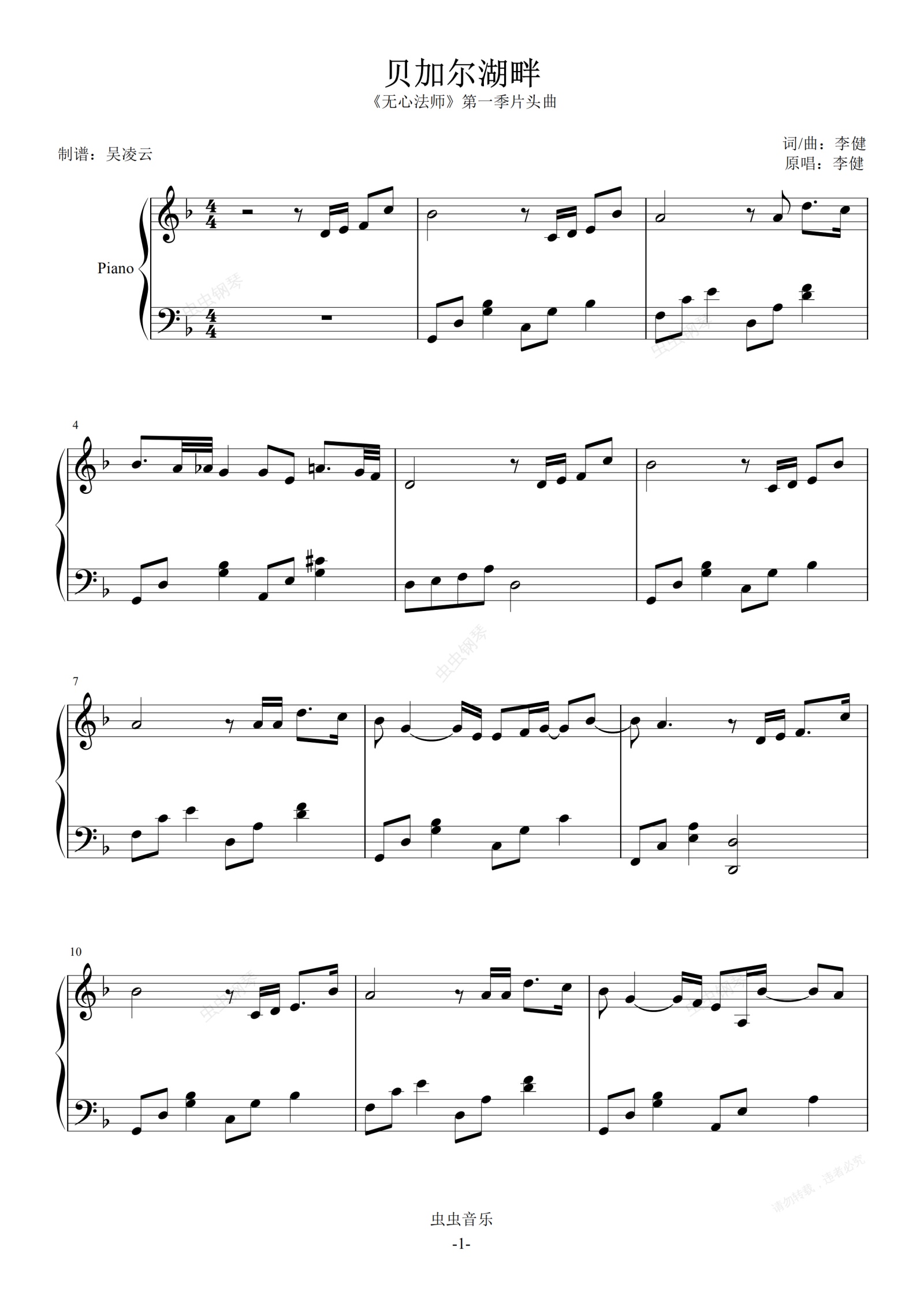 钢琴谱:贝加尔湖畔 初学者易上手版 吴凌云现代流行钢琴基础教程选辑