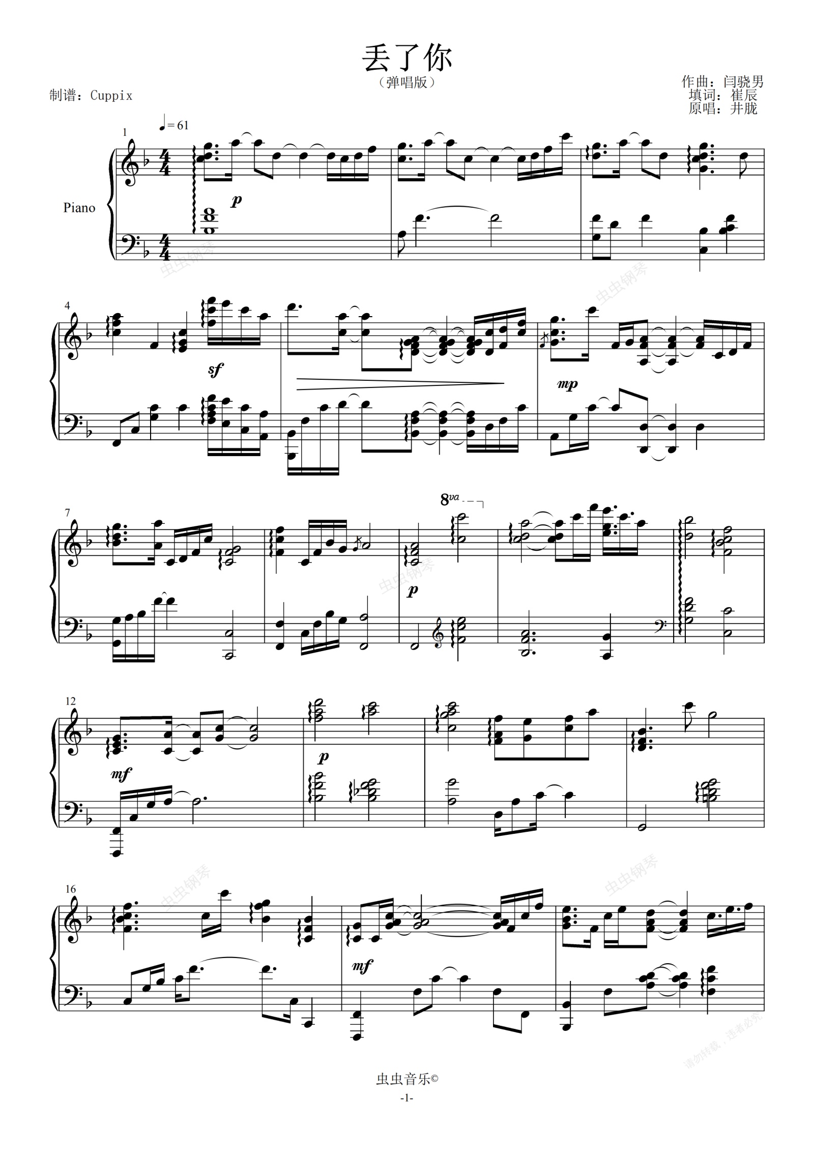 钢琴谱:井胧《丢了你》极限还原 弹唱伴奏