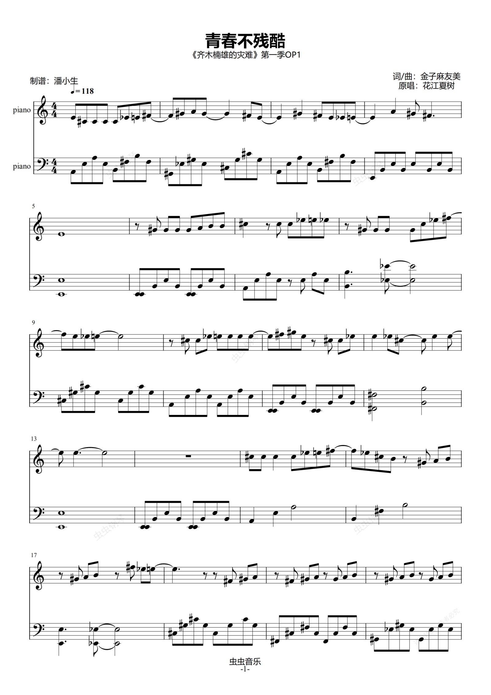 钢琴谱:青春不残酷《超能力者齐木楠雄的灾难》片头曲