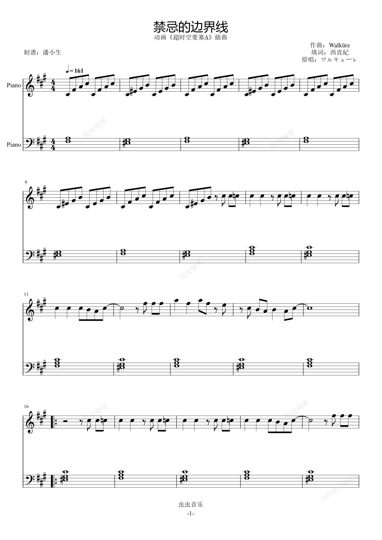 钢琴谱:禁忌边界线 超时空要塞Δ OST 动漫插曲