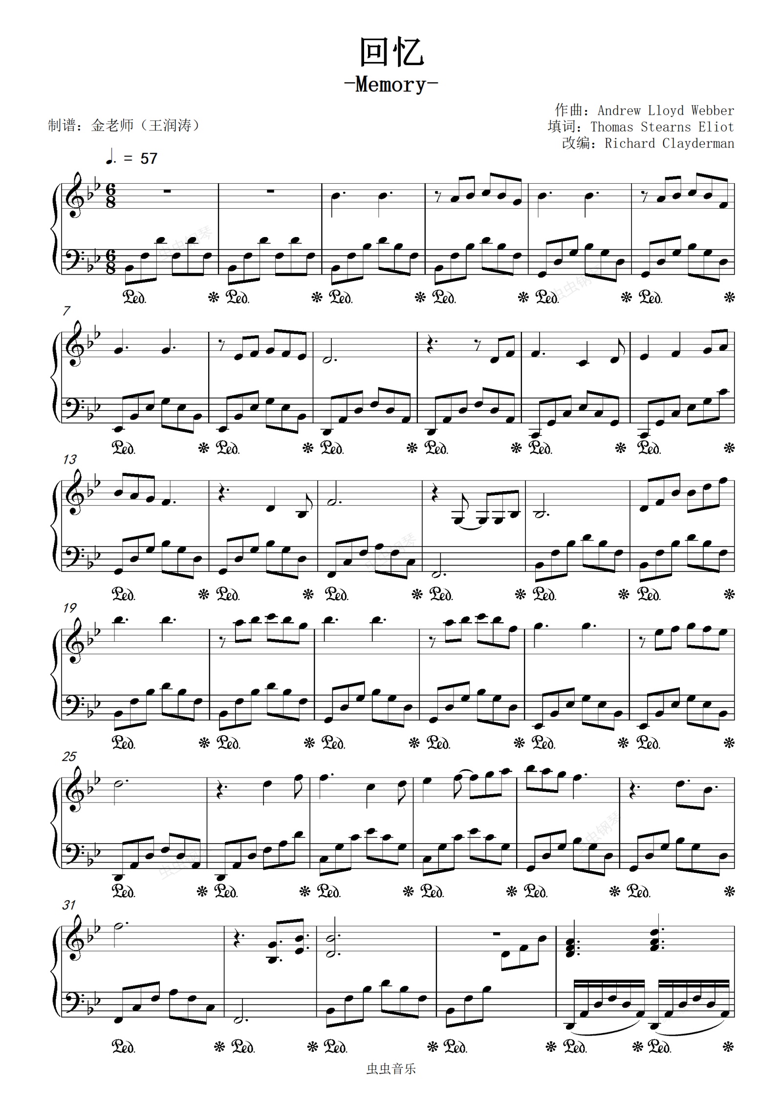钢琴谱:Memory(回忆)《猫》音乐剧-金老师原声独奏谱