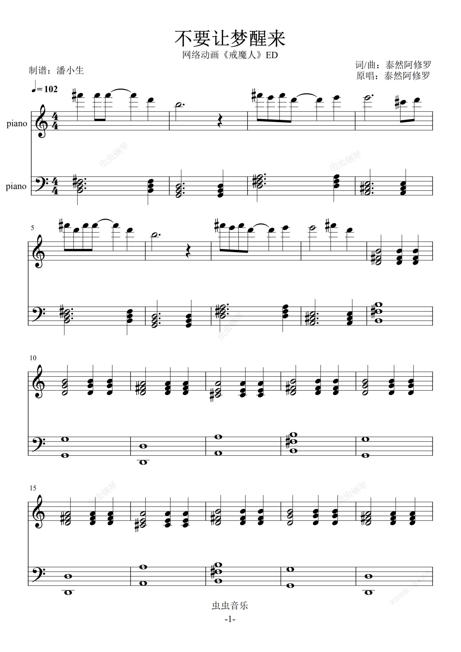 钢琴谱:不要让梦醒来 戒魔人ED 动漫片尾曲