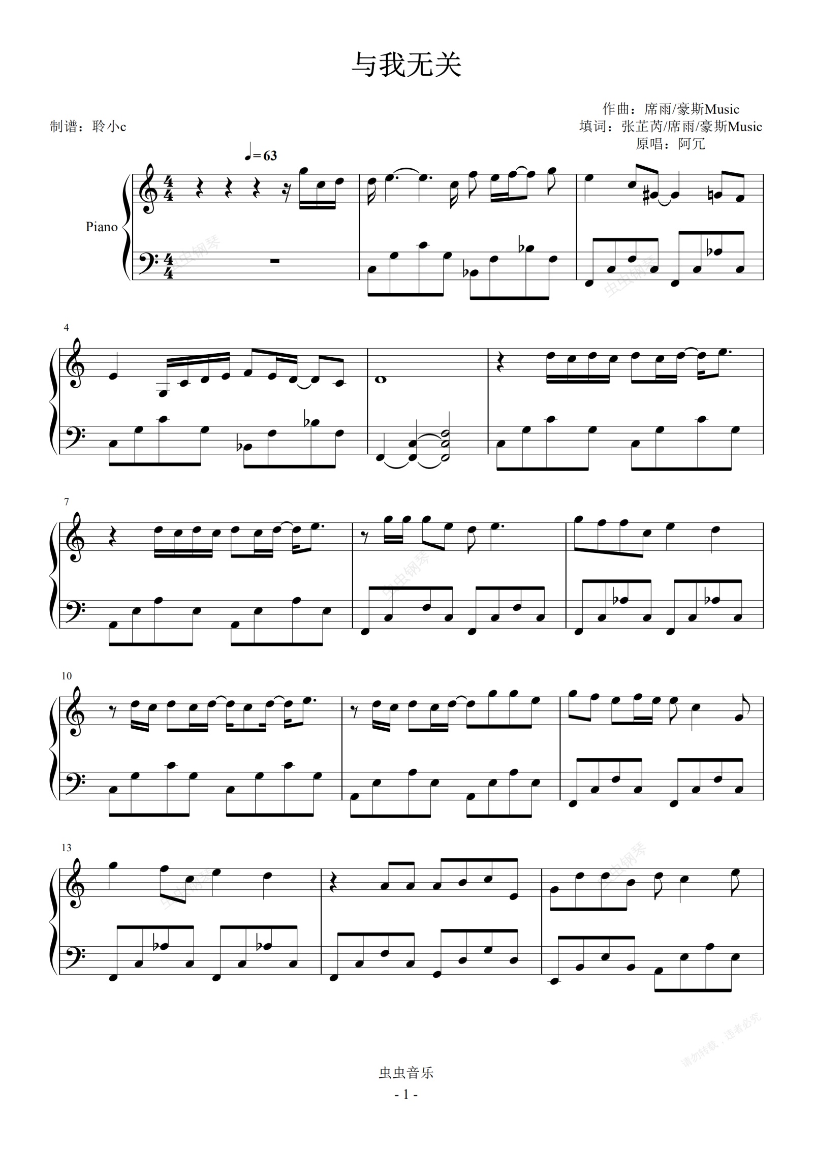 您的位置: 首页 > 钢琴谱库 > 与我无关