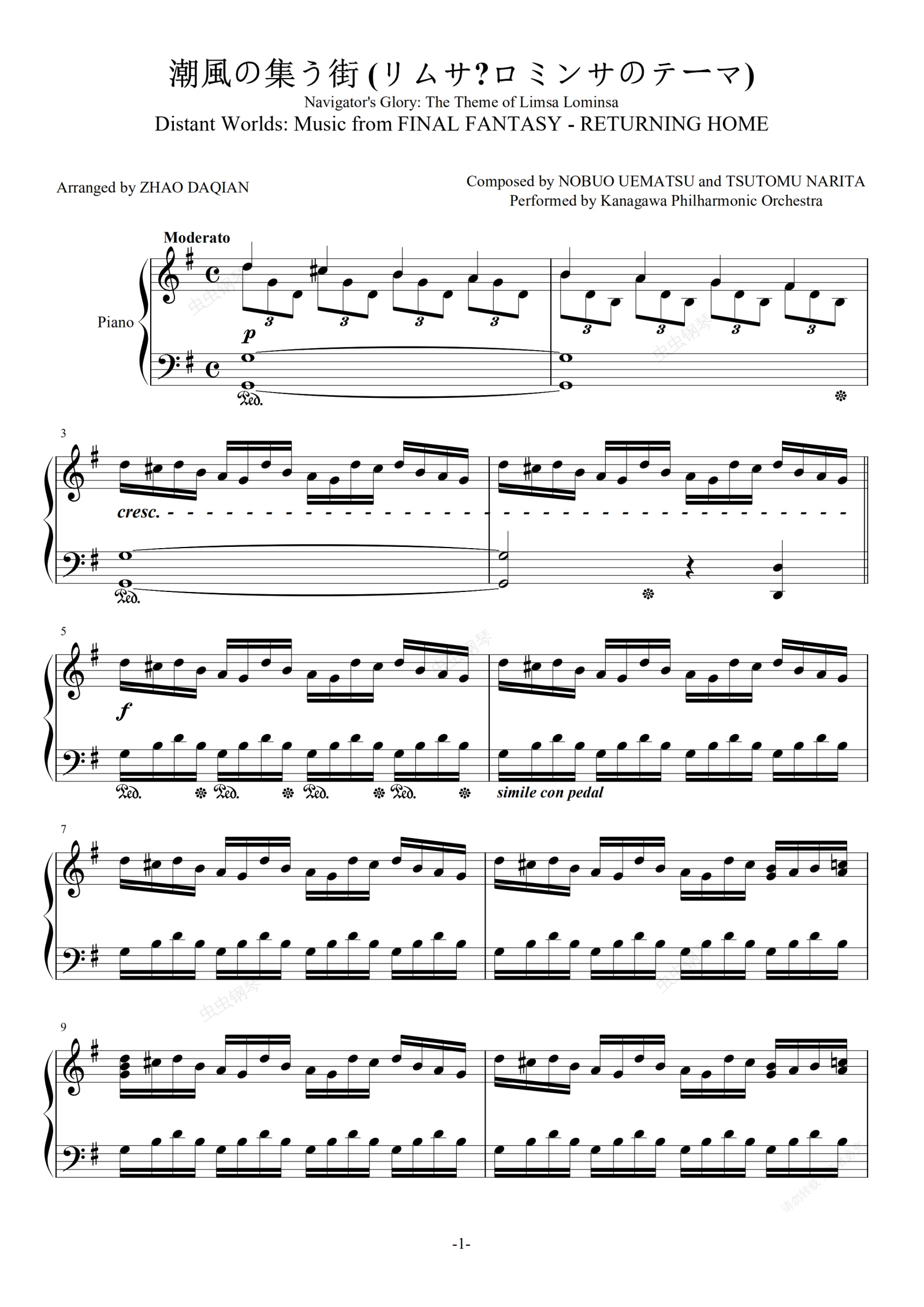 钢琴谱:最终幻想14BGM 海都主题--潮风の集う街 ~リムサ・ロミンサのテーマ~