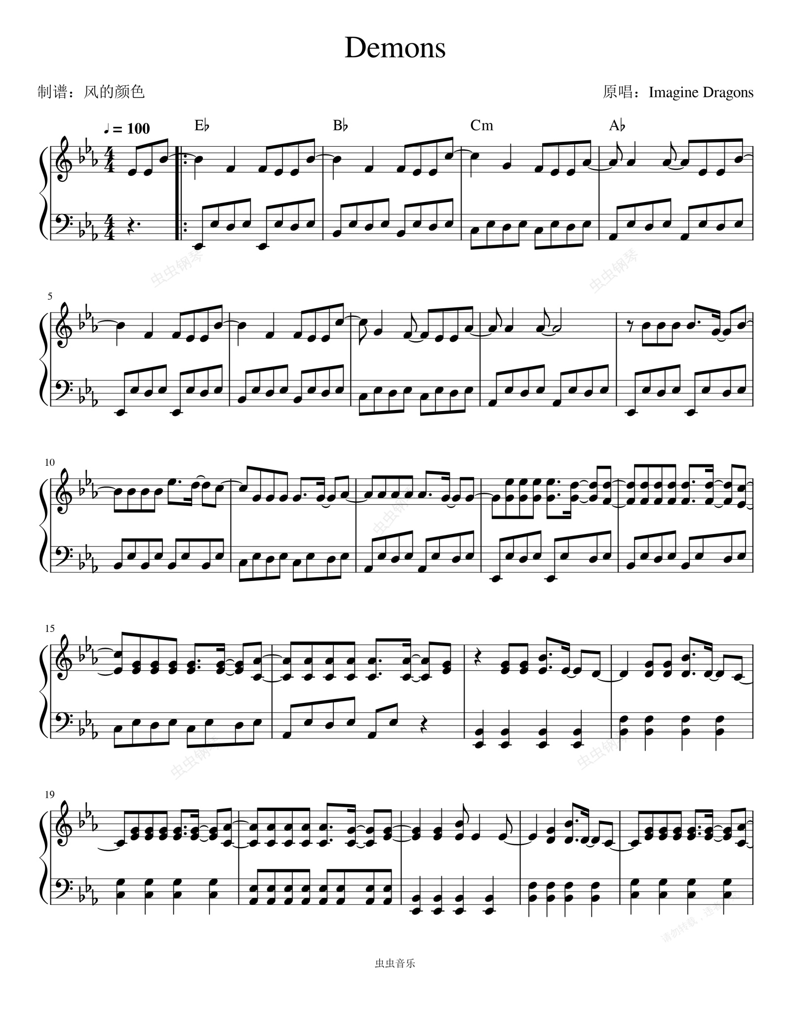 钢琴谱:Demons--Imagine Dragons《九层妖塔》电影主题曲