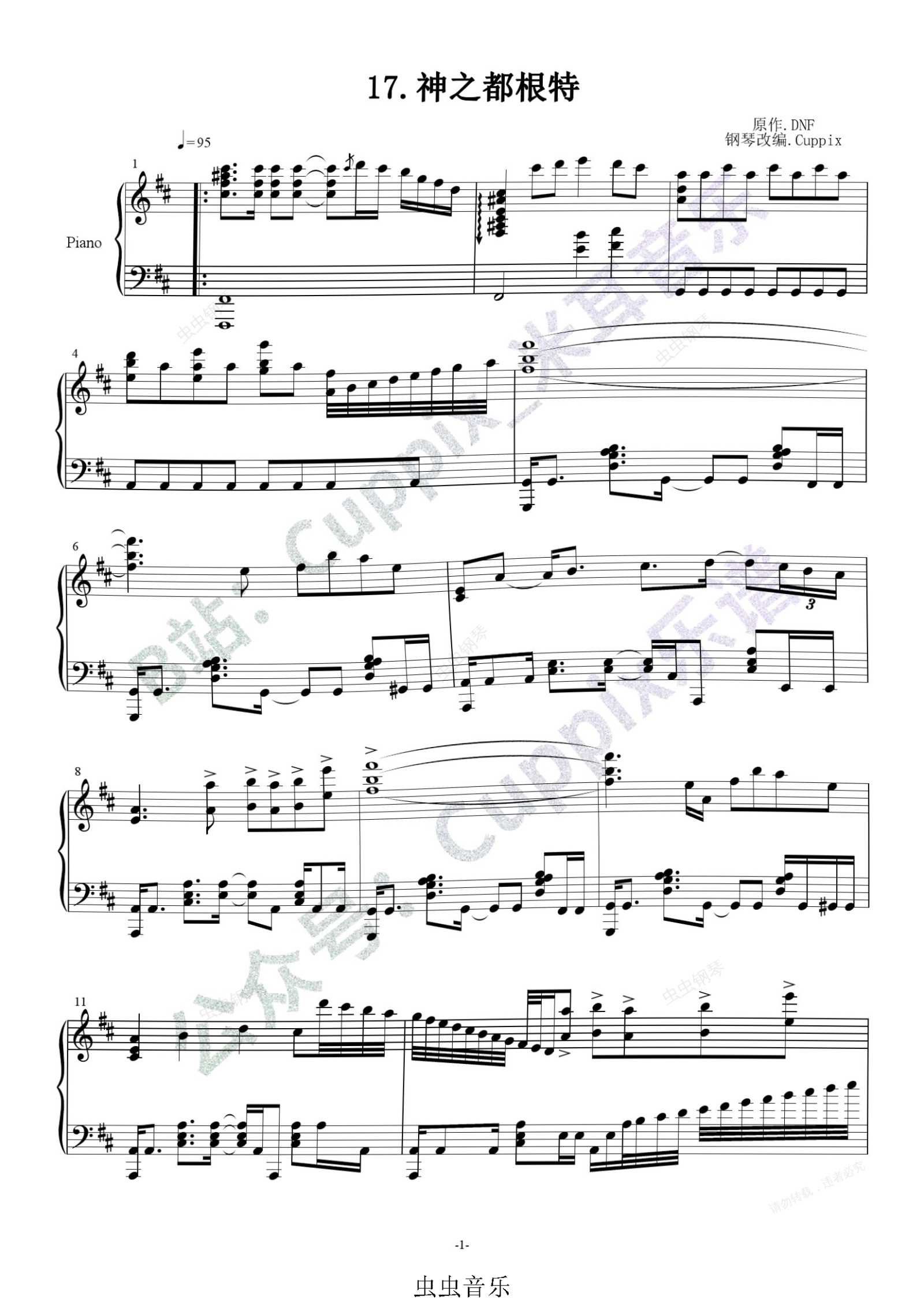钢琴谱:DNF - 神之都根特,天界BGM(高度还原)