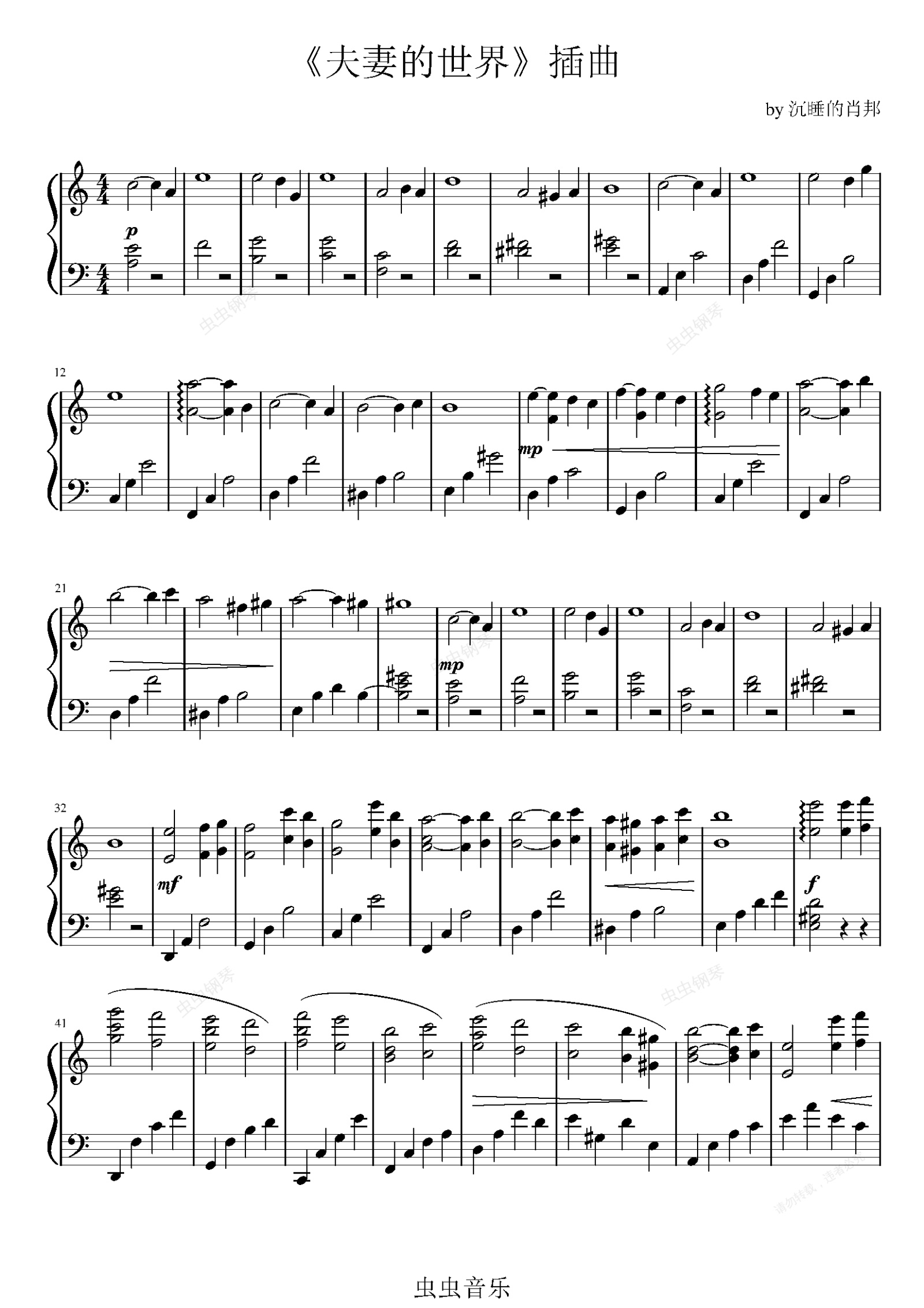 钢琴谱:《夫妻的世界》插曲钢琴谱