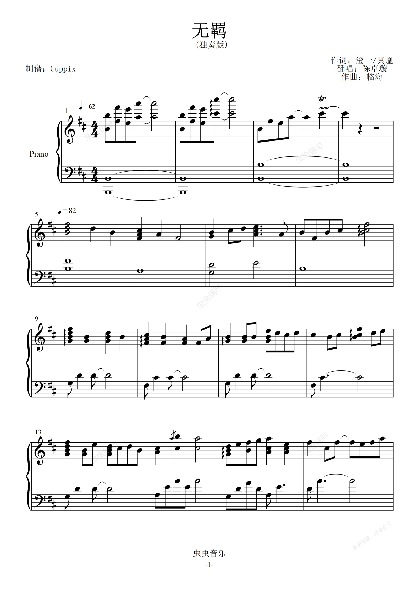 钢琴谱:陈卓璇 - 无羁 (独奏版 高度还原)创造营2020