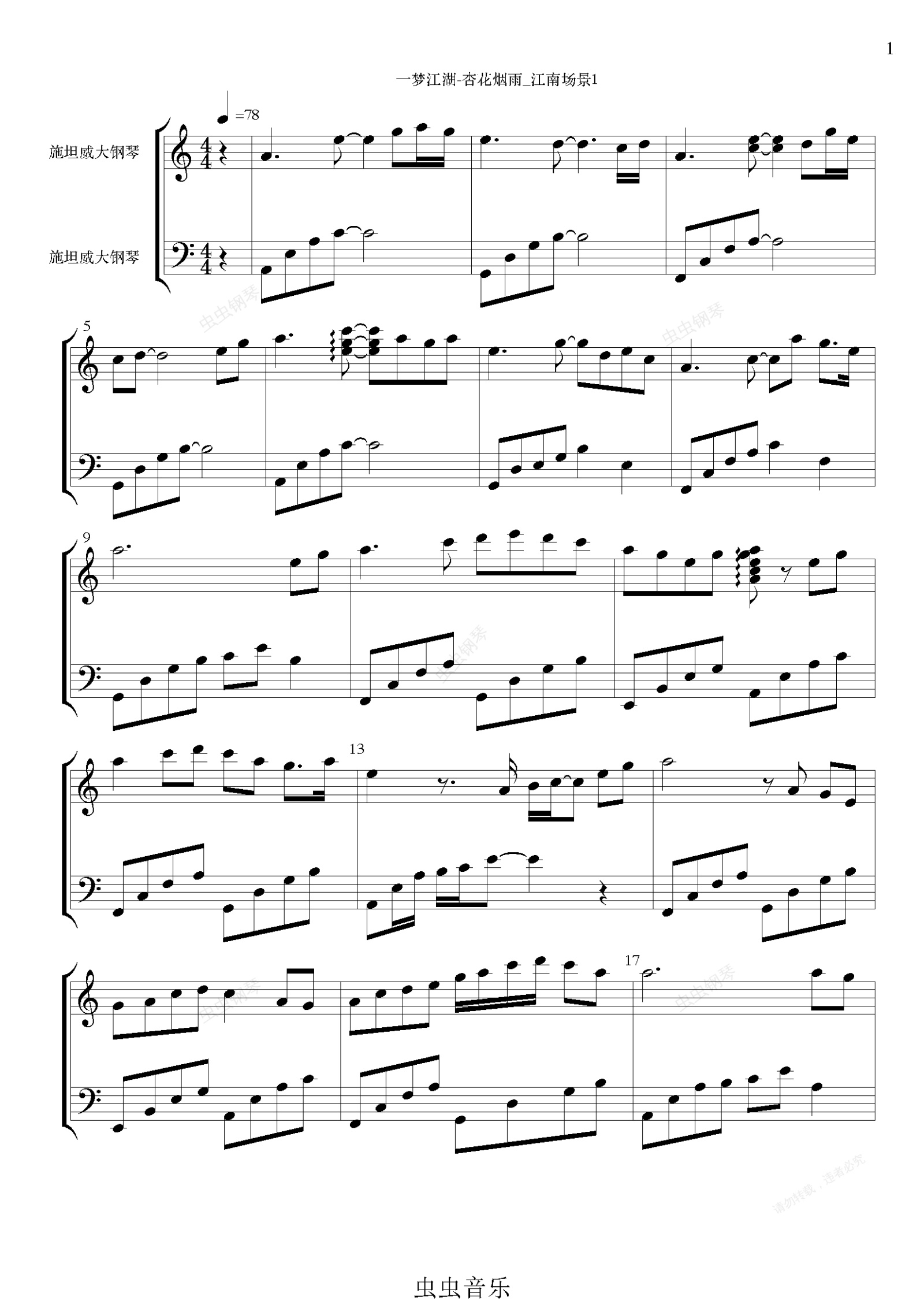 钢琴谱:一梦江湖-杏花烟雨_江南场景1 钢琴版