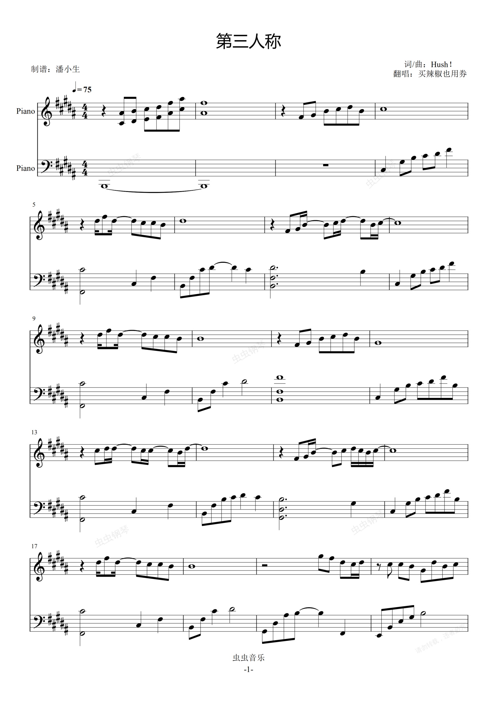 钢琴谱:第三人称 独奏版 B调 买辣椒也用券版