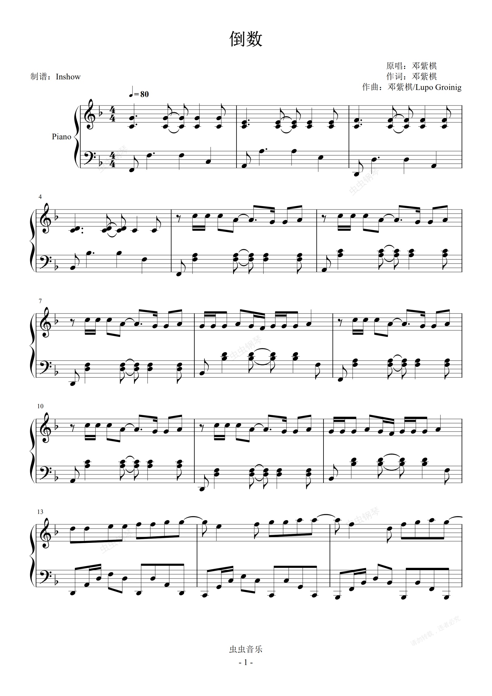 钢琴谱:G.E.M.邓紫棋 - 倒数【独奏谱】