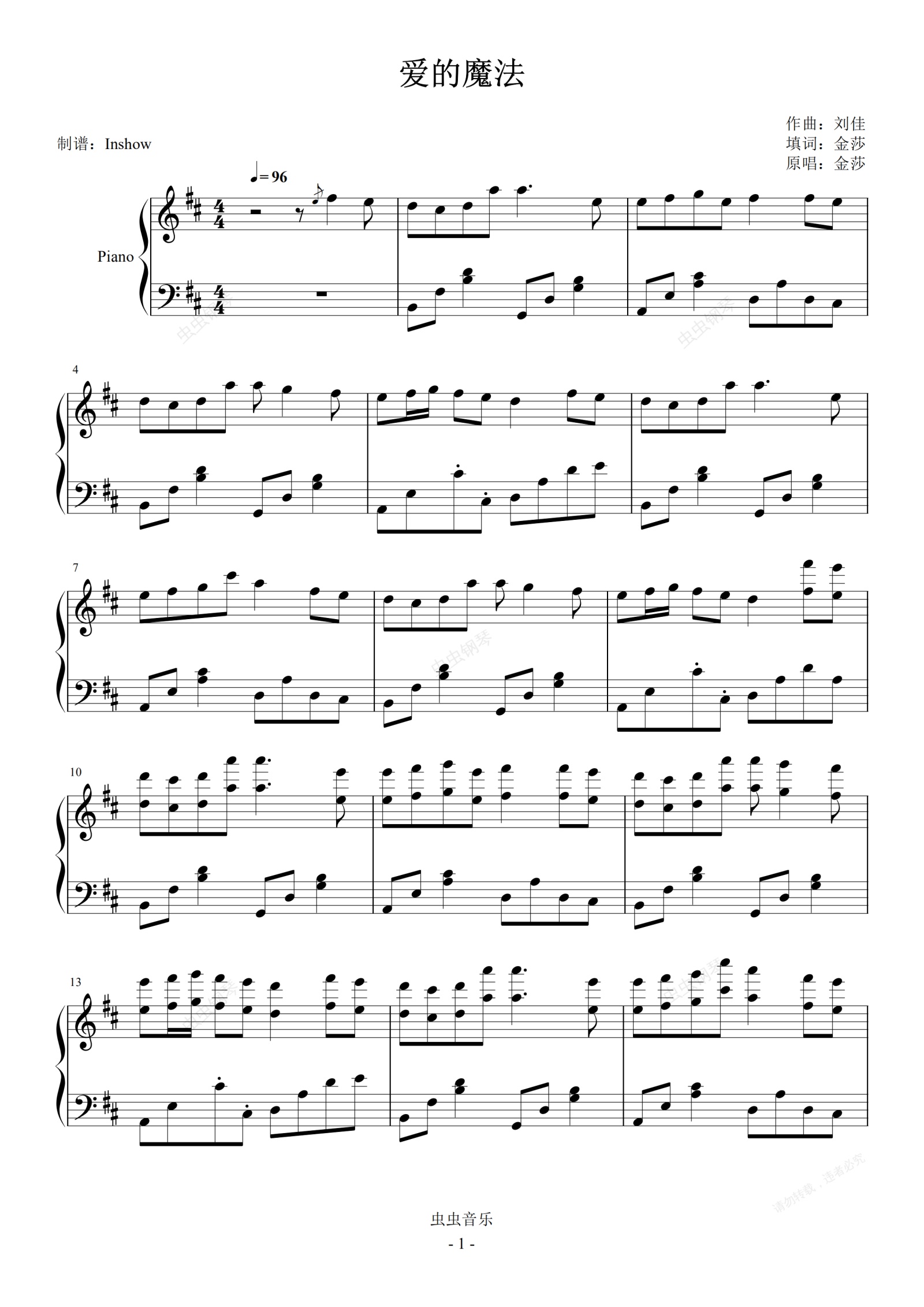 钢琴谱:金莎 - 爱的魔法【独奏谱】