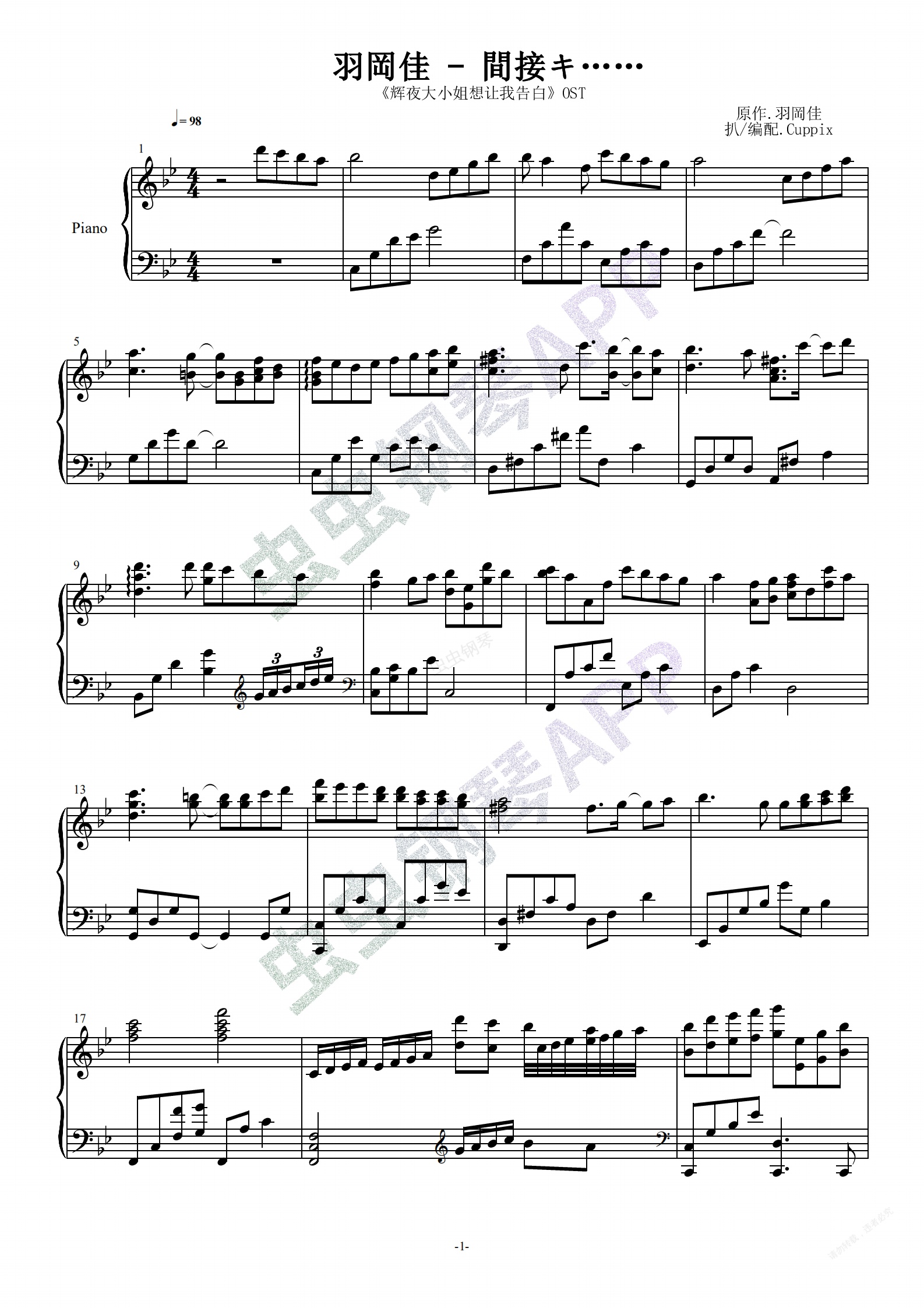 钢琴谱:《間接キ……》辉夜大小姐想让我告白