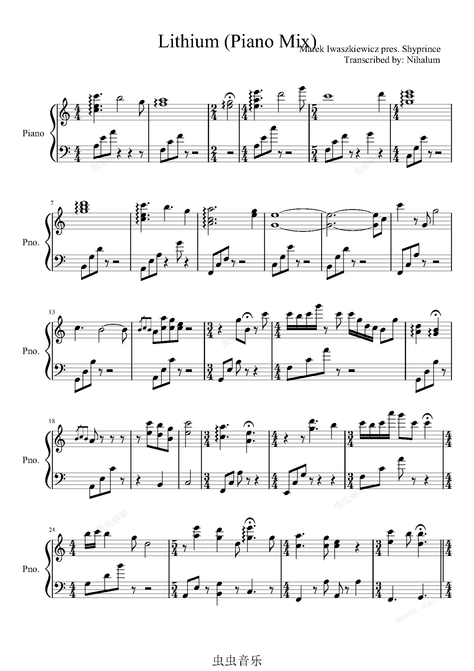 钢琴谱:Lithium