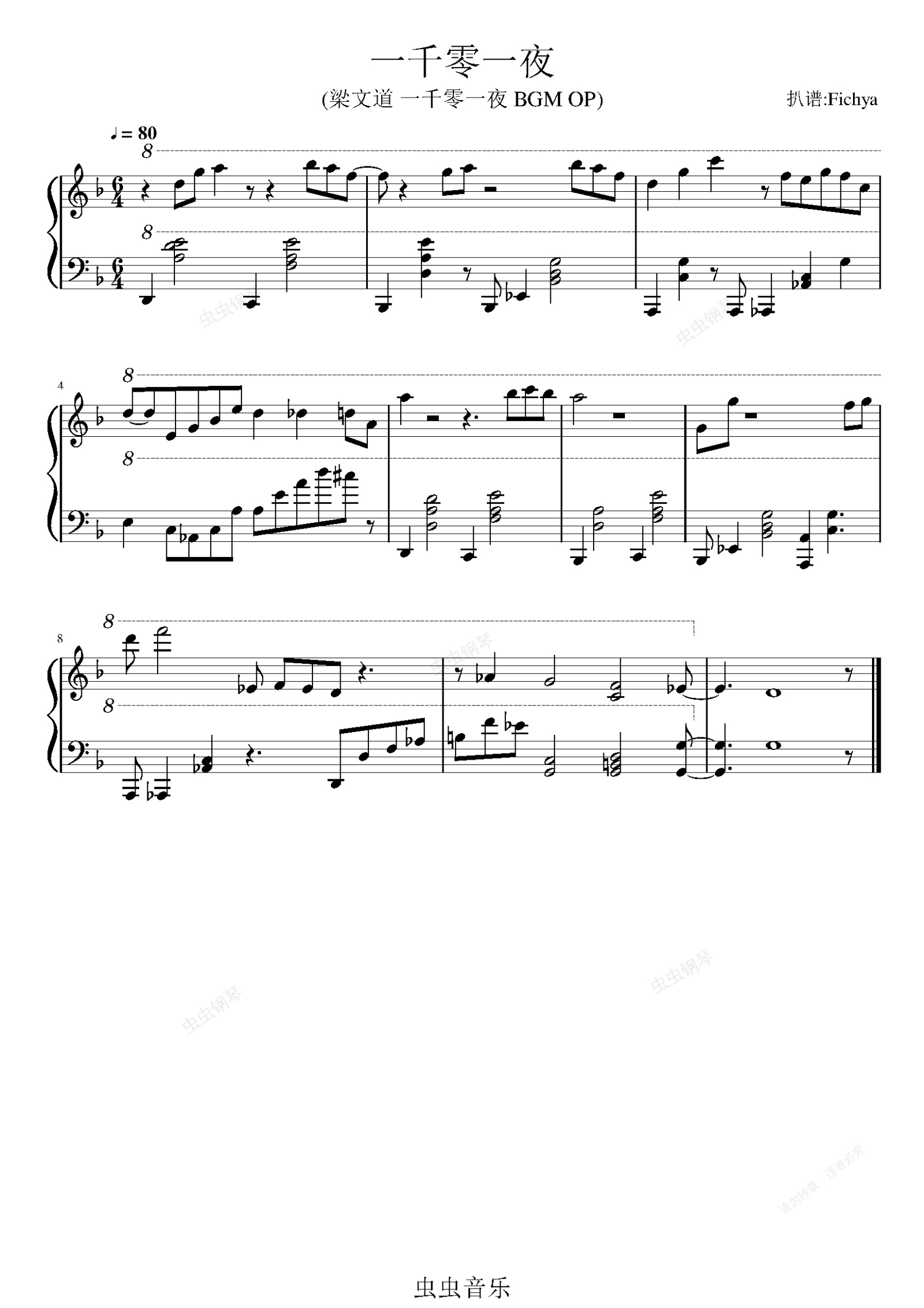 钢琴谱:一千零一夜 (梁文道 一千零一夜 BGM OP)