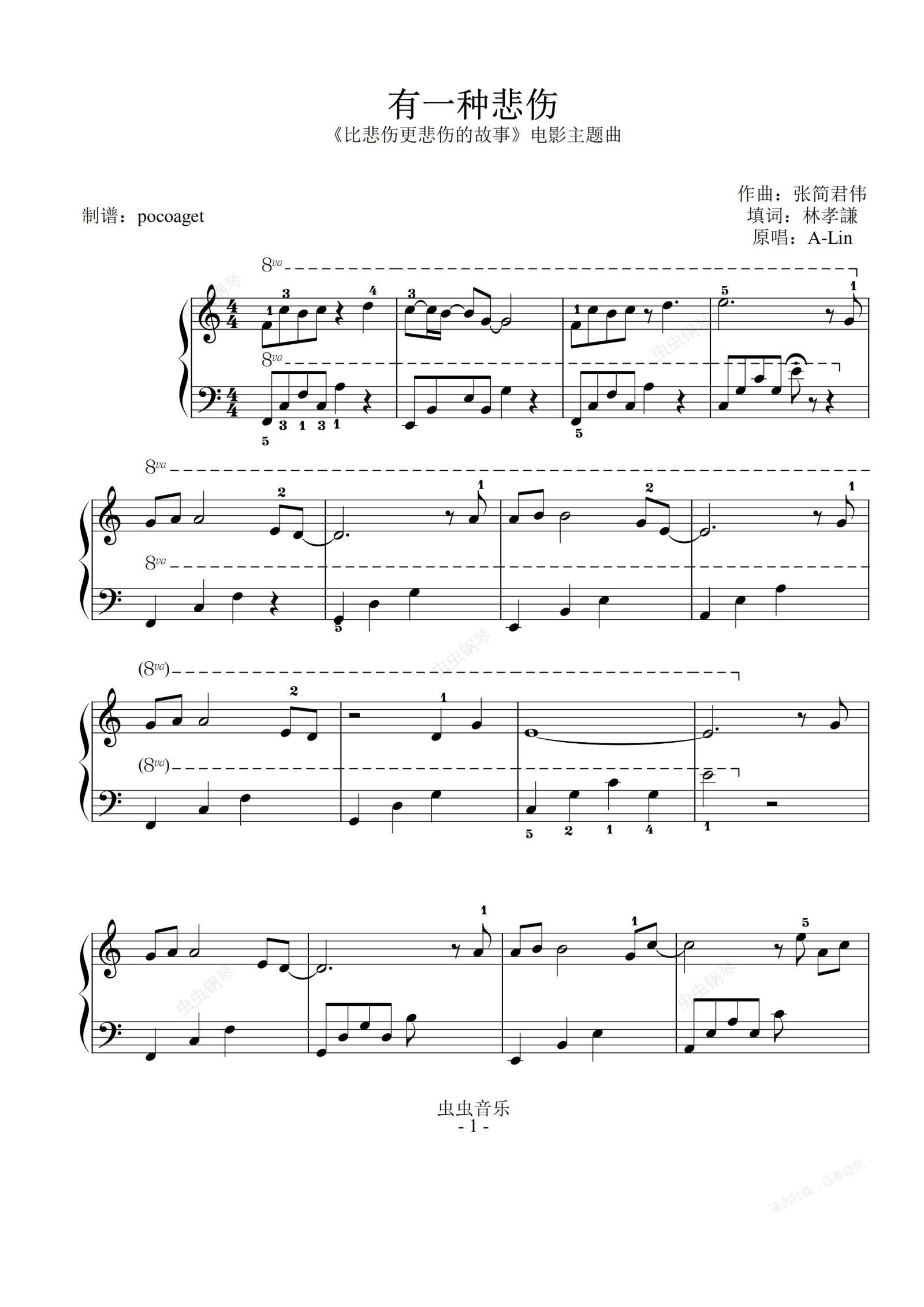 钢琴谱:有一种悲伤(电影《比悲伤更悲伤的故事》主题曲)初学者唯美版