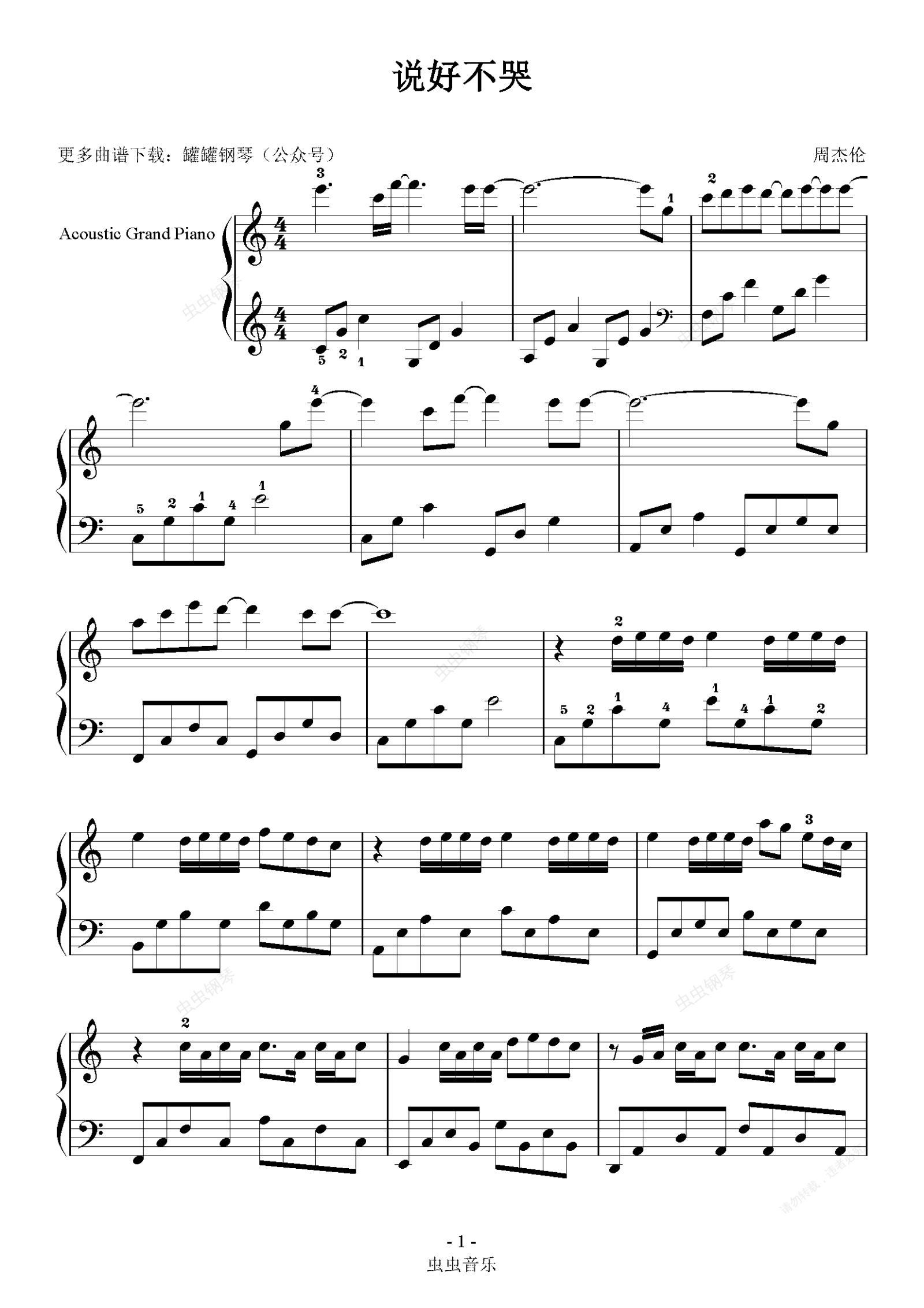 钢琴谱:说好不哭 初学者易上手版