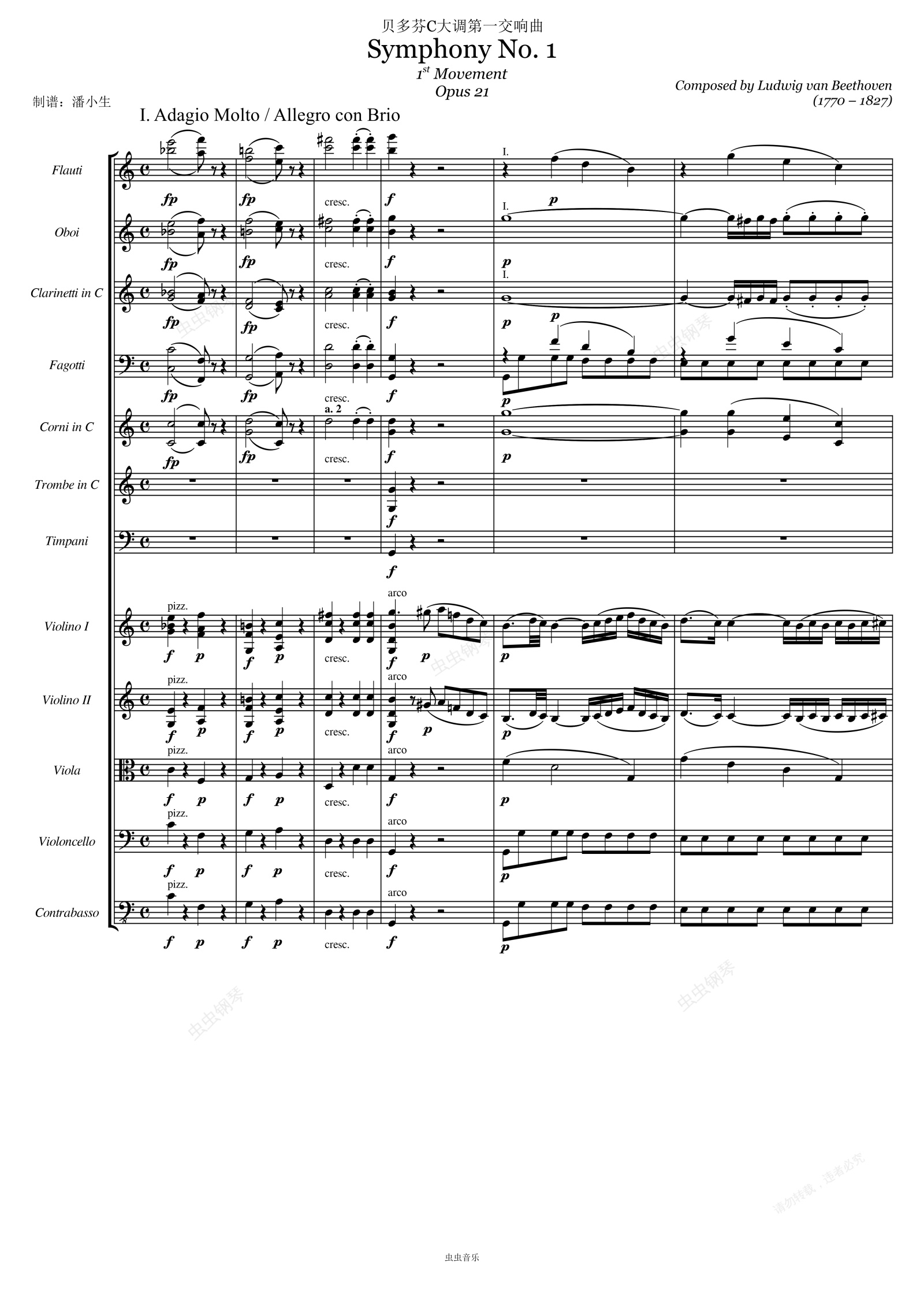 钢琴谱:Symphony No. 1 贝多芬 C大调 第一交响曲 高清 第一乐章 总谱