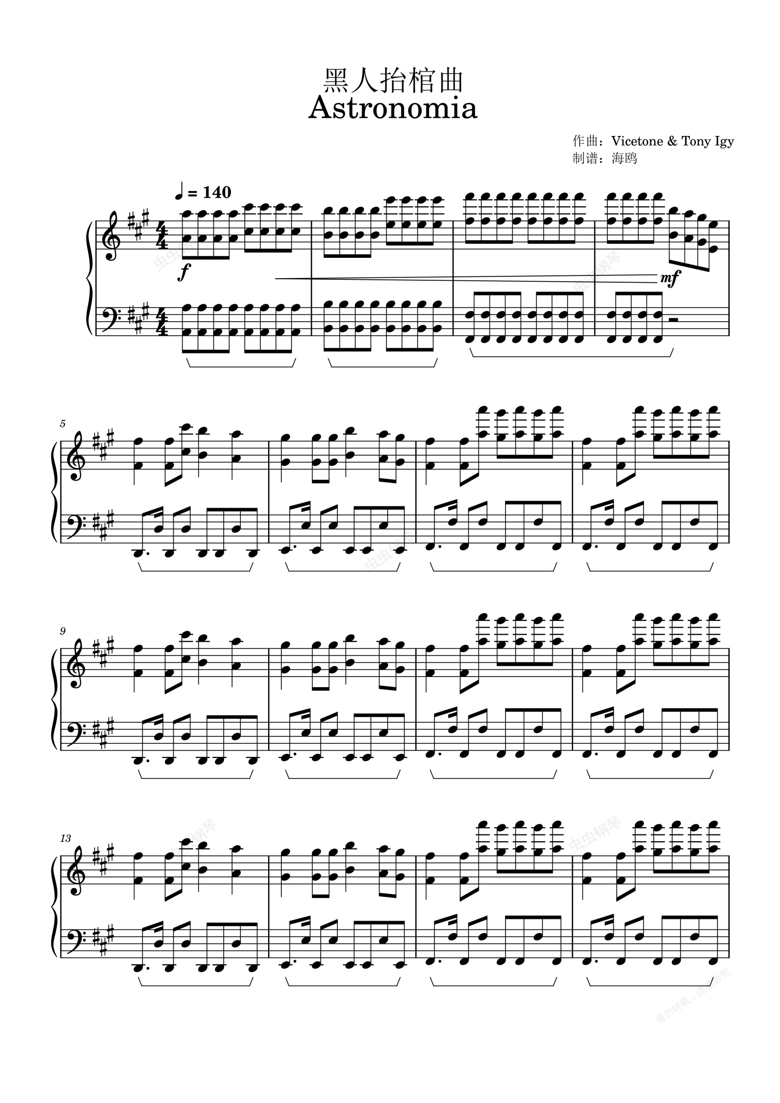 钢琴谱:Astronomia黑人抬棺曲(正版高燃)