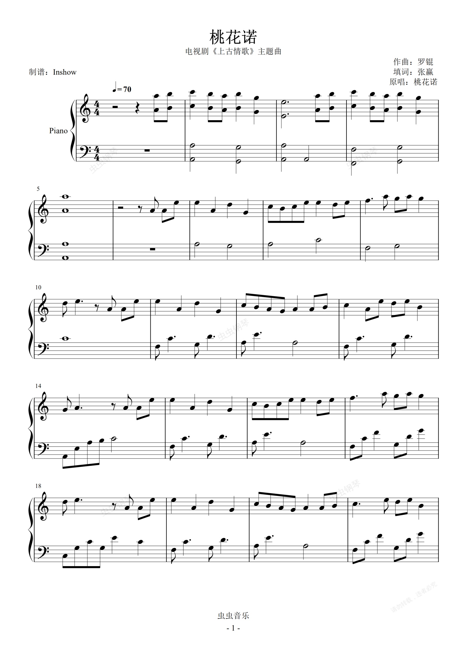 钢琴谱:G.E.M.邓紫棋 - 桃花诺【独奏谱】
