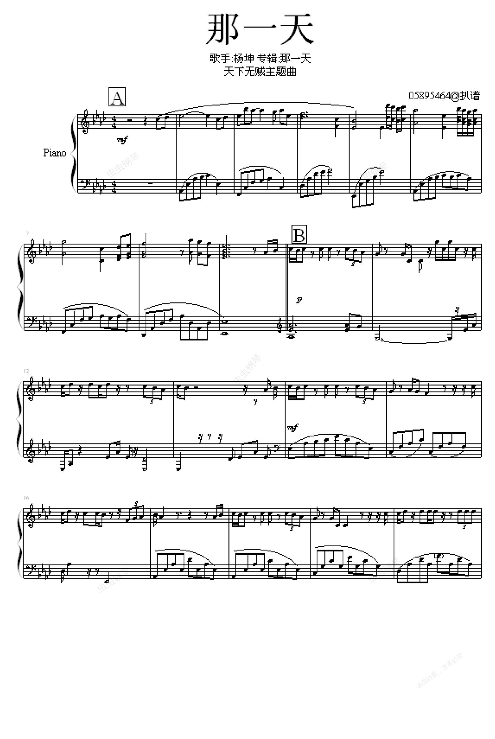钢琴谱:那一天 - 《天下无贼》主题曲