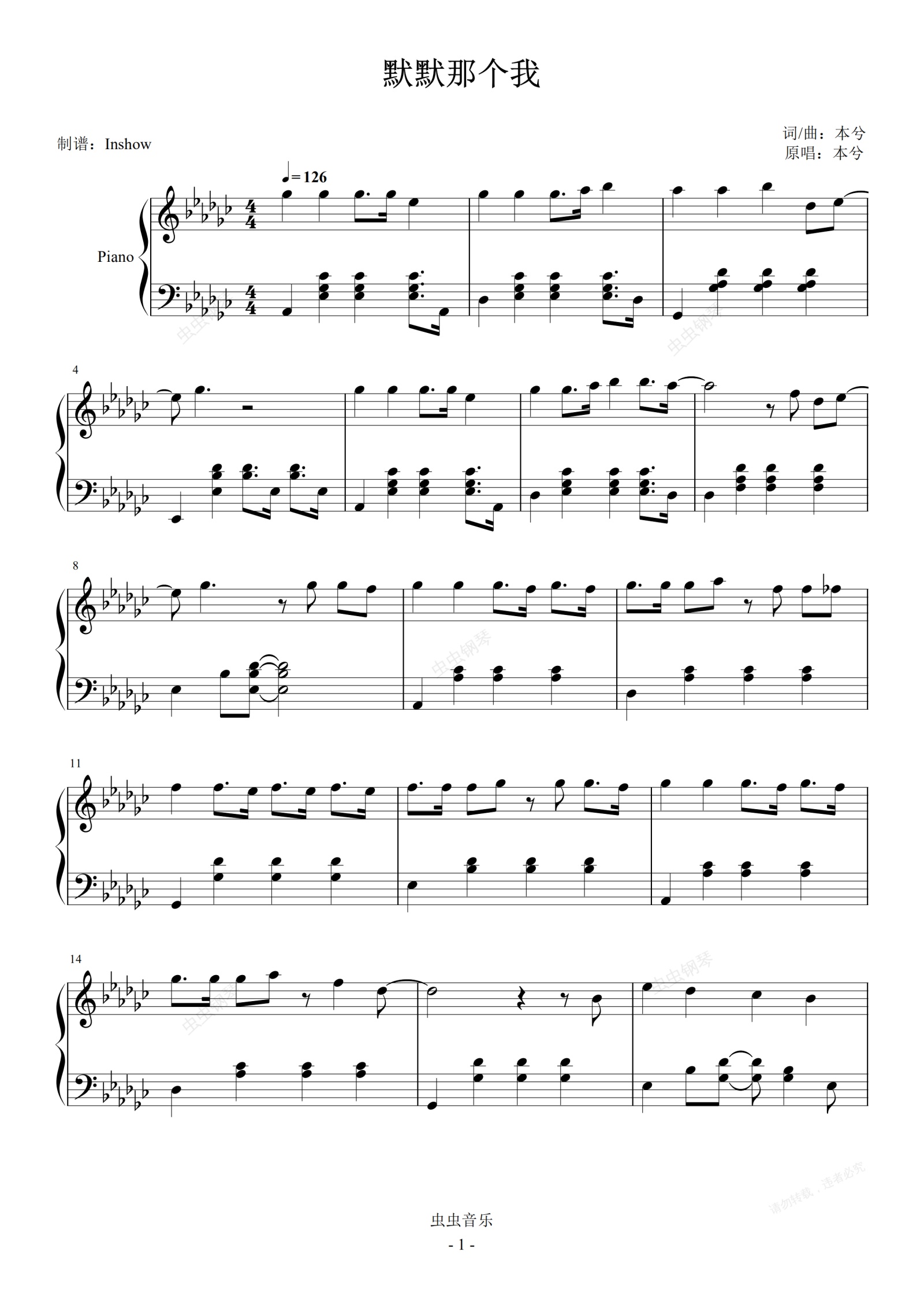钢琴谱:本兮 - 默默那个我【独奏谱】