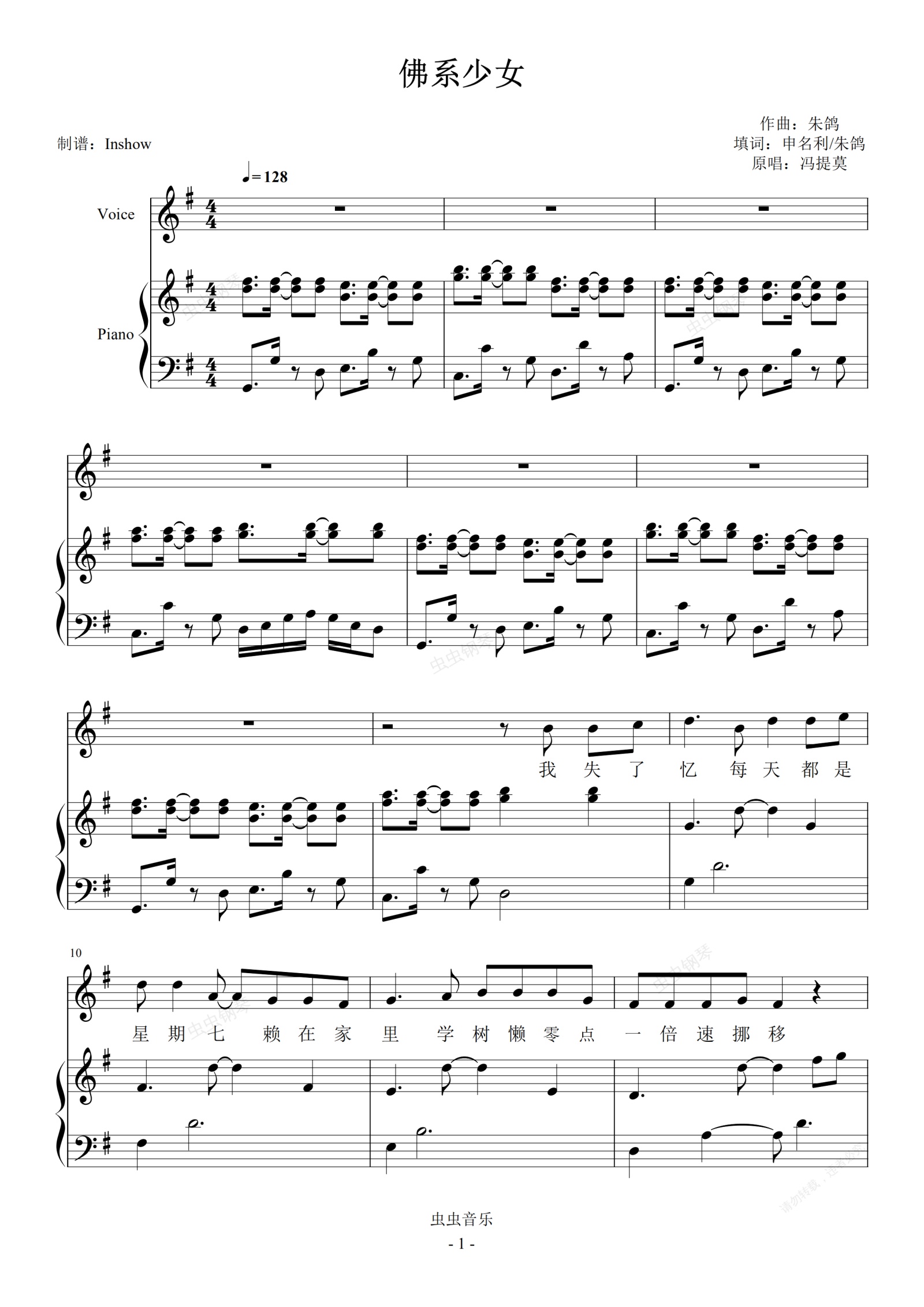 钢琴谱:冯提莫 - 佛系少女【弹唱谱】