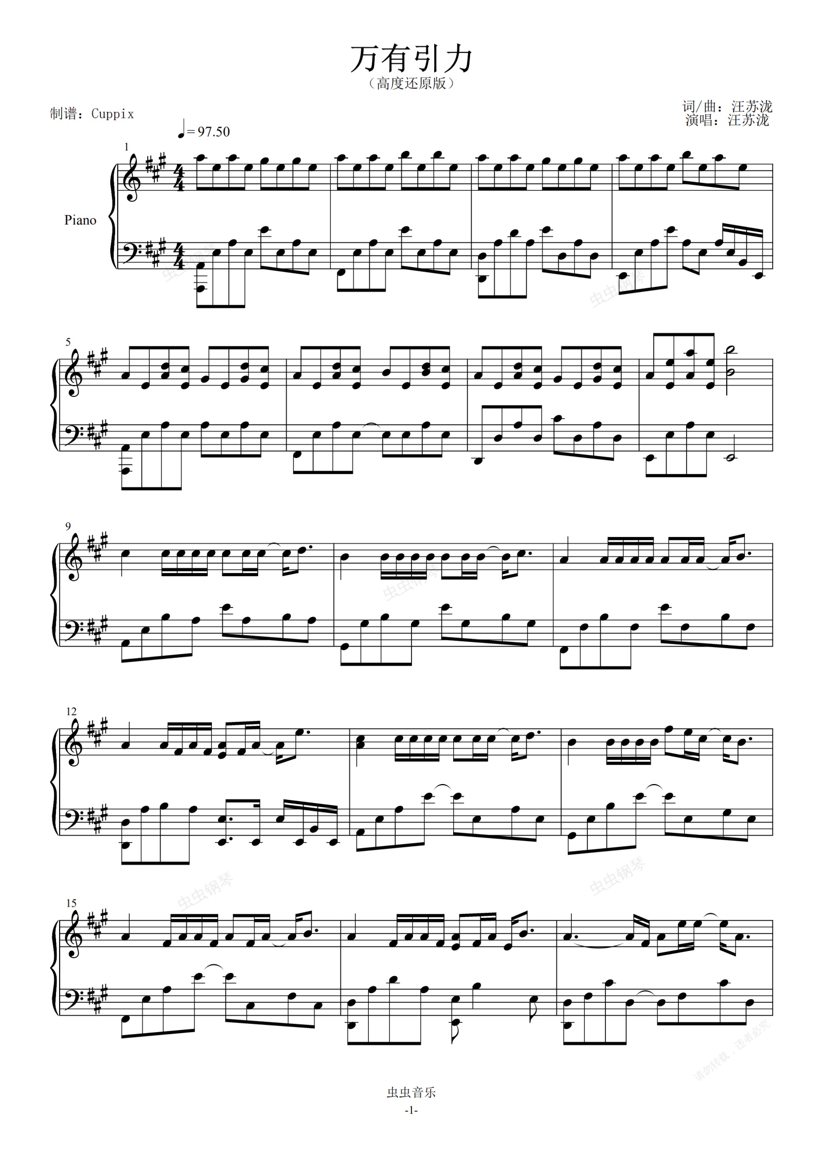 钢琴谱:汪苏泷《万有引力》高度还原版