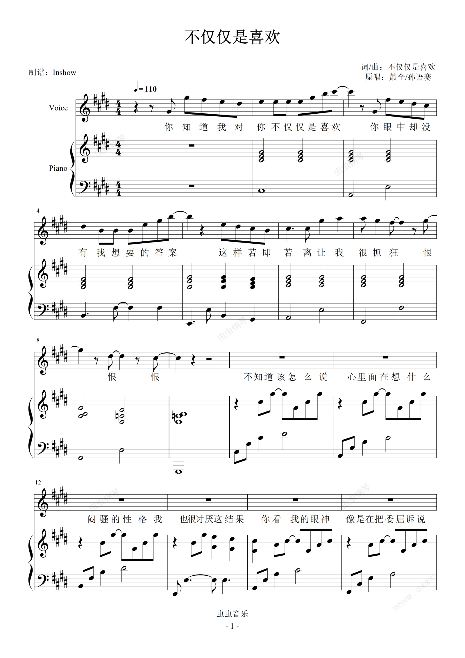 钢琴谱:萧全、孙语赛 - 不仅仅是喜欢【弹唱谱】