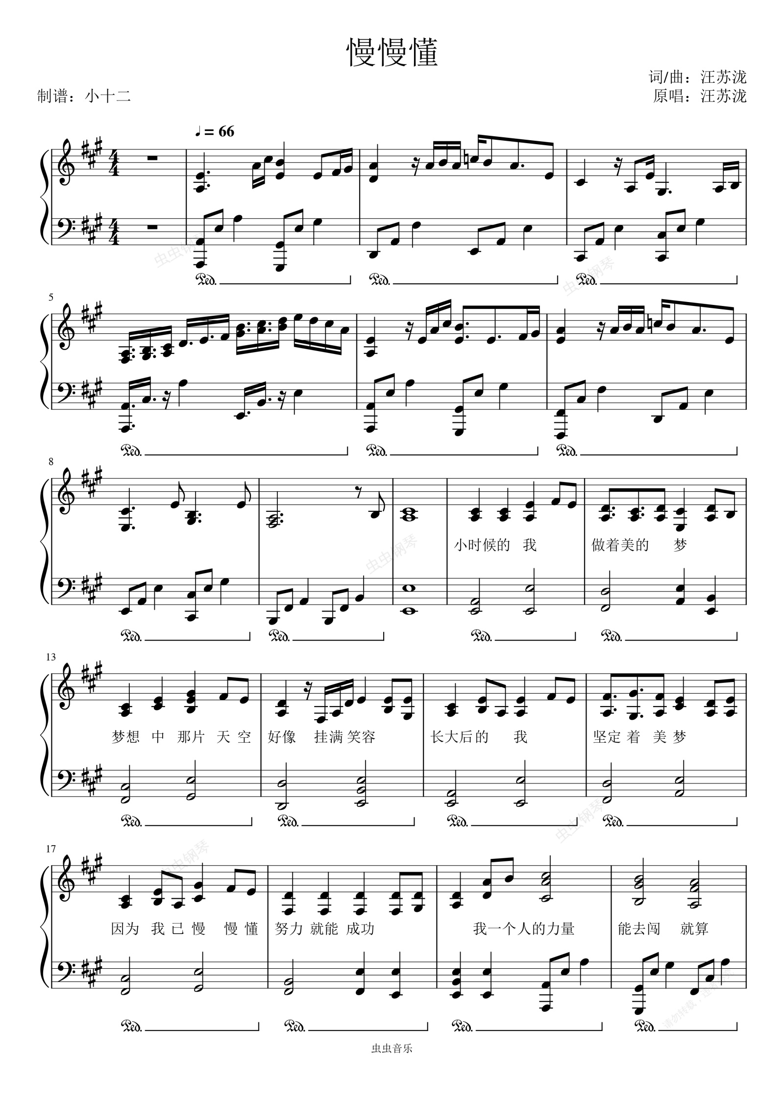 钢琴谱:《慢慢懂》钢琴伴奏或弹唱