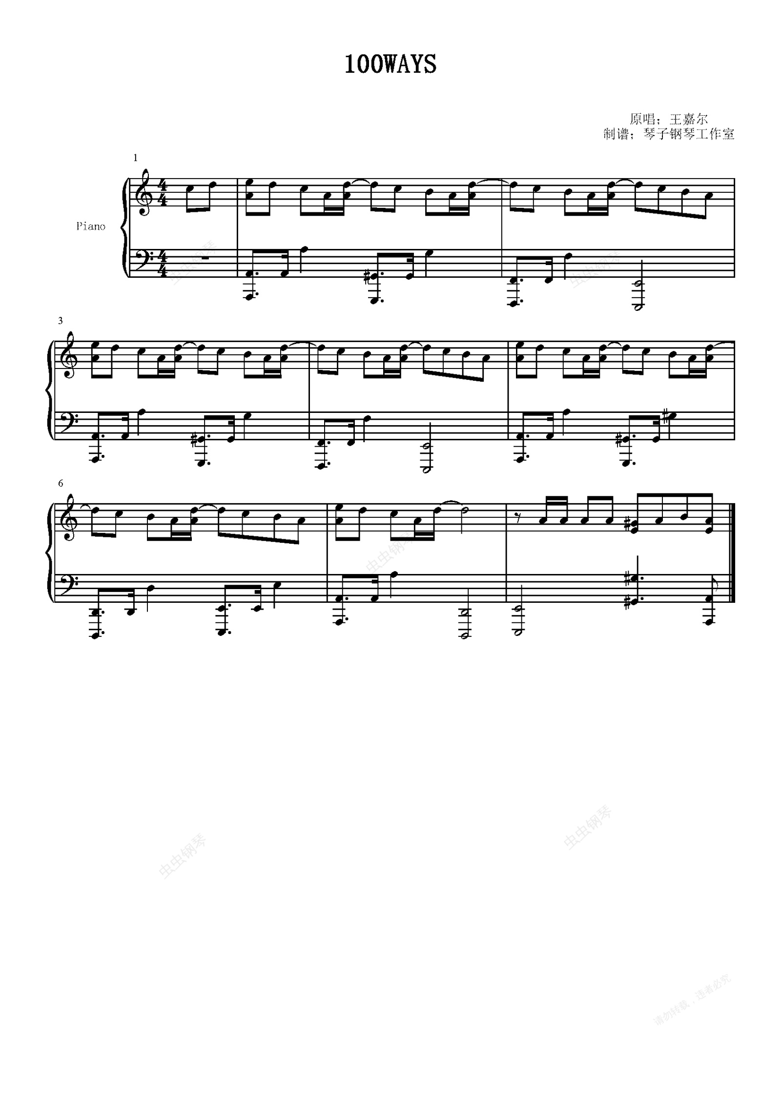 钢琴谱:100WAYS(抖音搜琴子钢琴工作室)