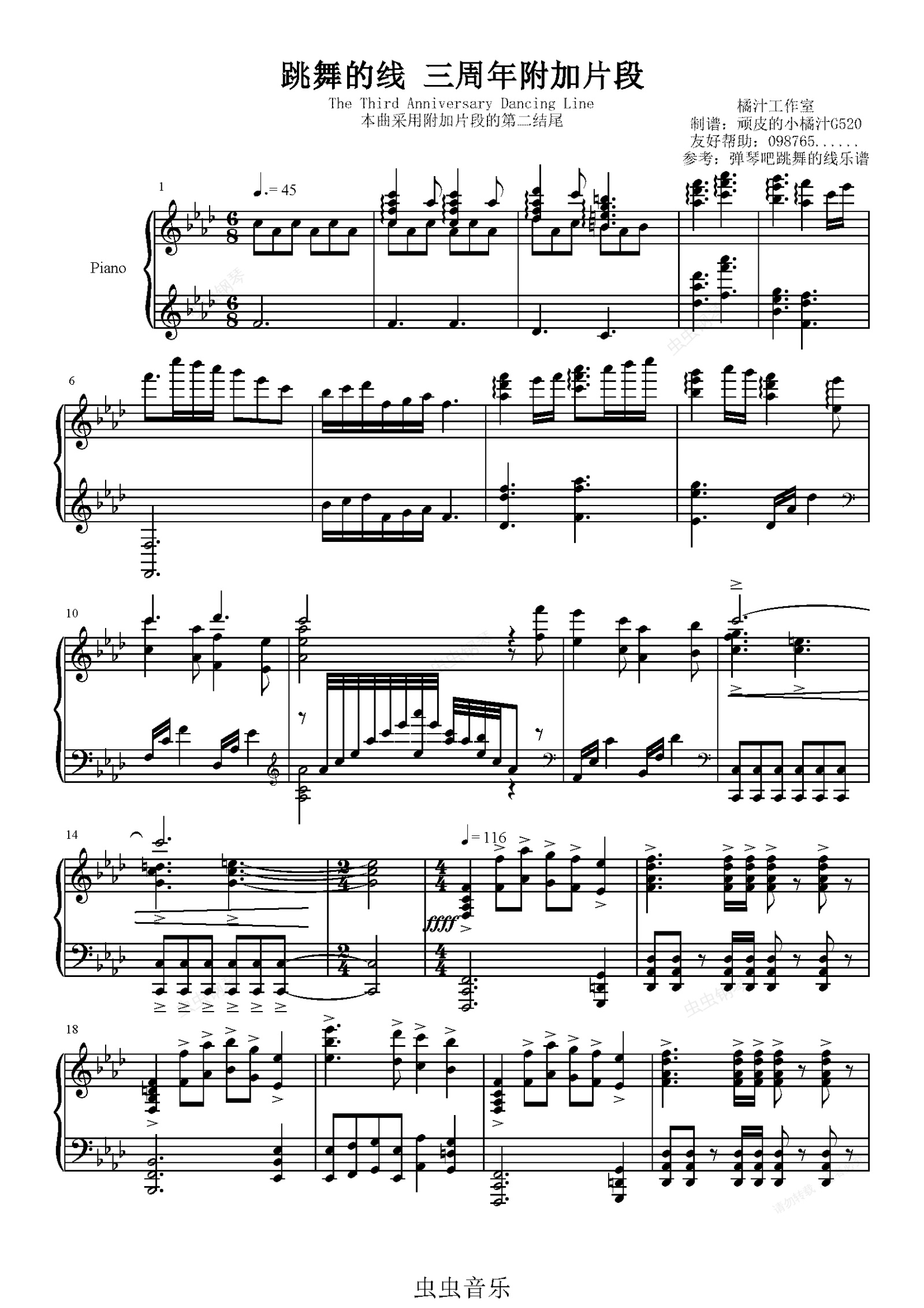 钢琴谱:跳舞的线 三周年附加片段 The Third Anniversary Dancing Line