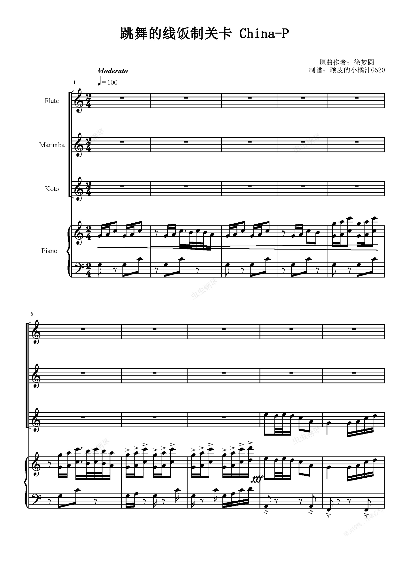 钢琴谱:跳舞的线饭制关卡 徐梦圆 China-P 完美版