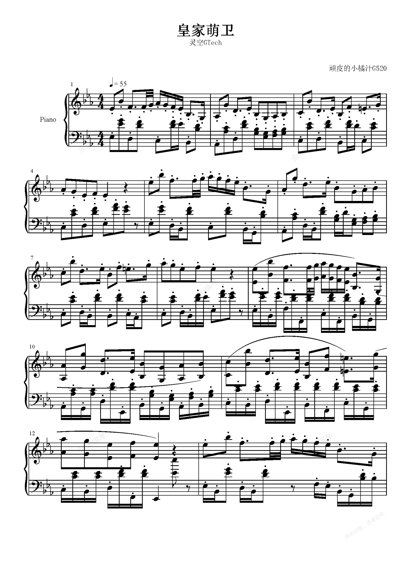 钢琴谱:皇家萌卫【可能会有一些错误请见谅】