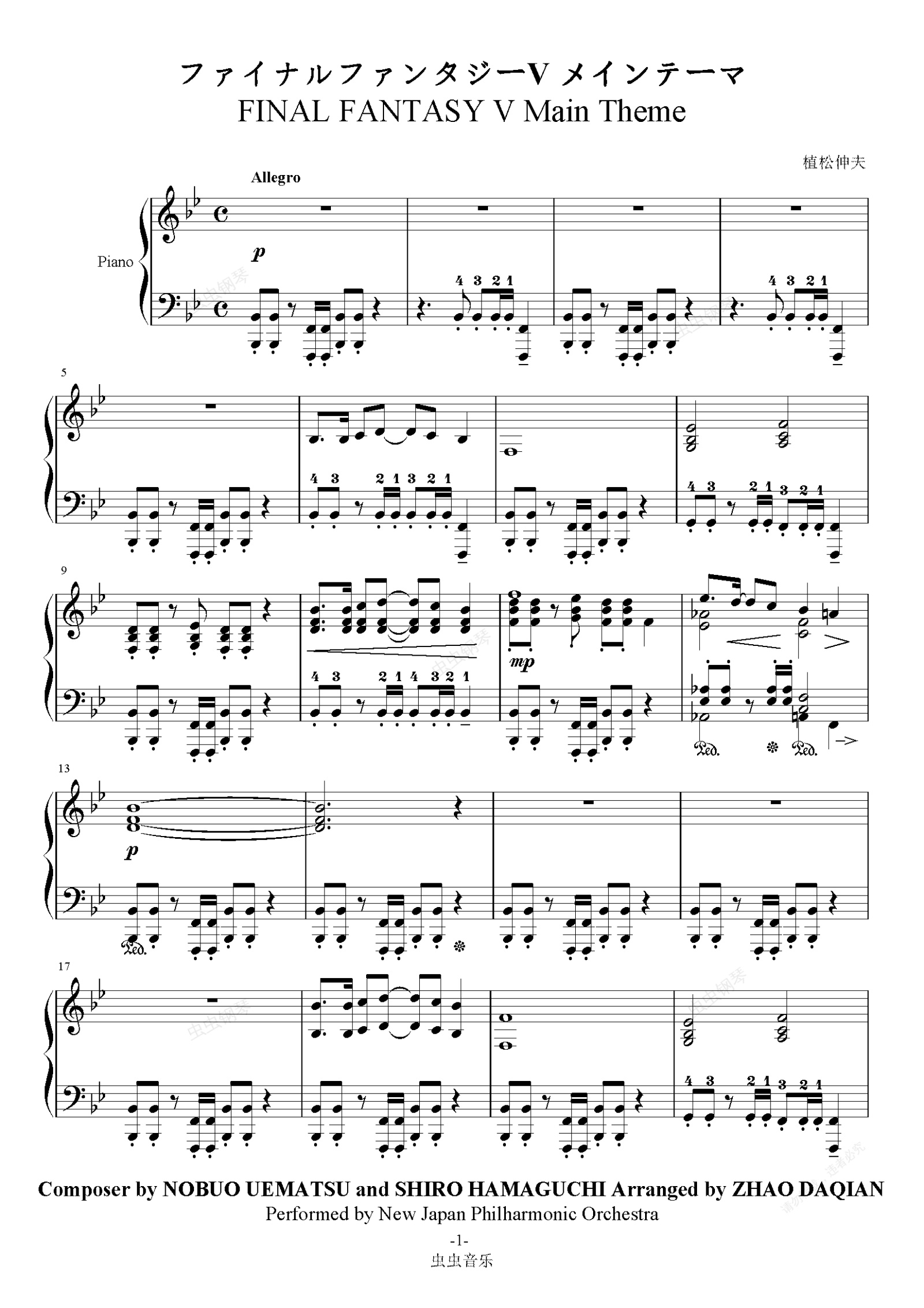 钢琴谱:最终幻想V主题 完整版