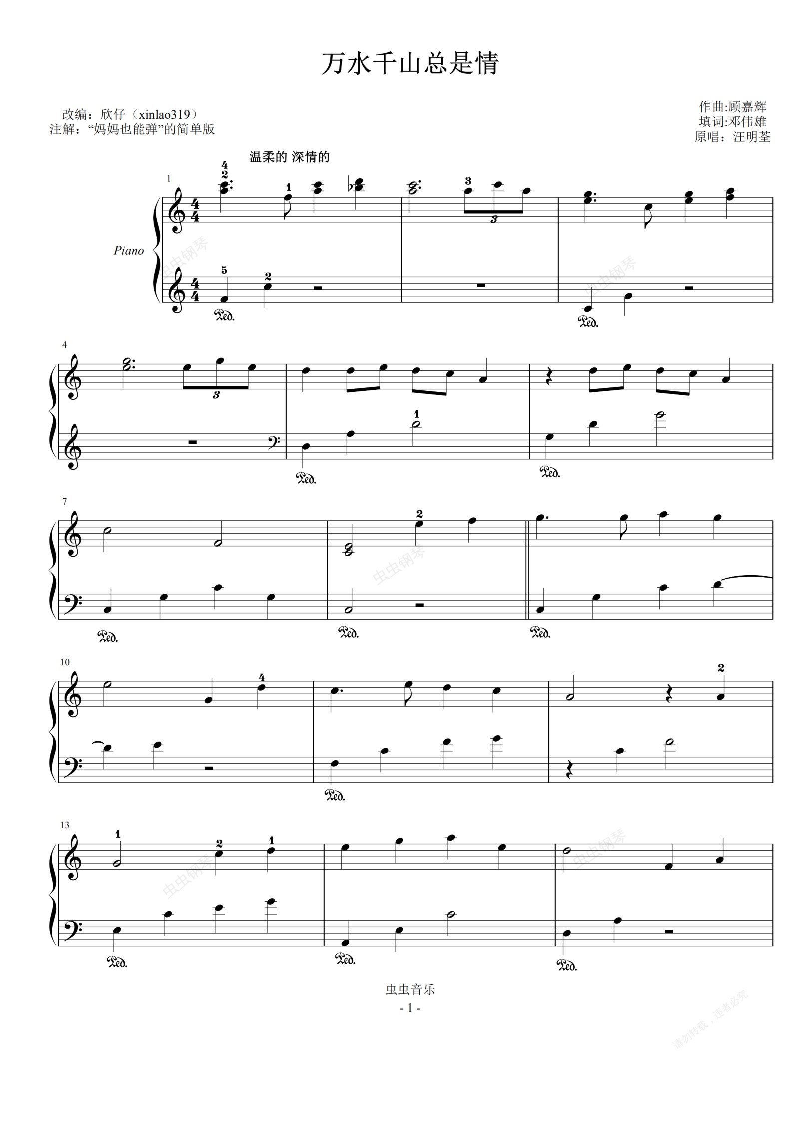 钢琴谱:万水千山总是情(简易版)