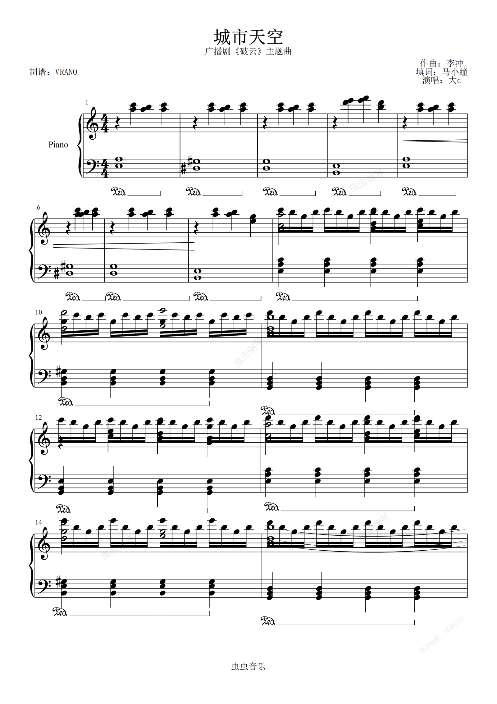 钢琴谱:城市天空--广播剧《破云》主题曲