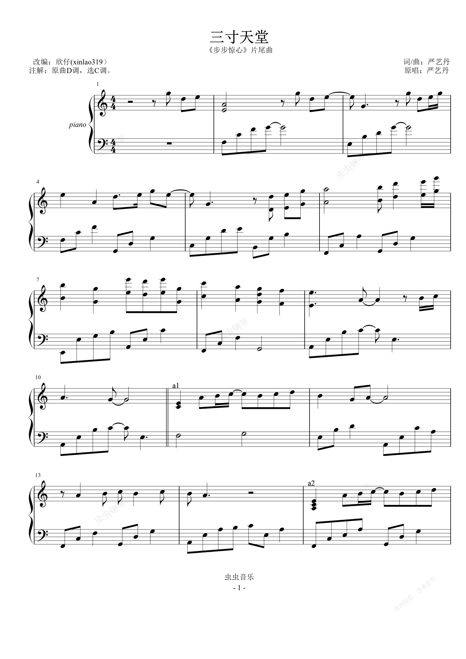 钢琴谱:三寸天堂(C调2020优化简化版)