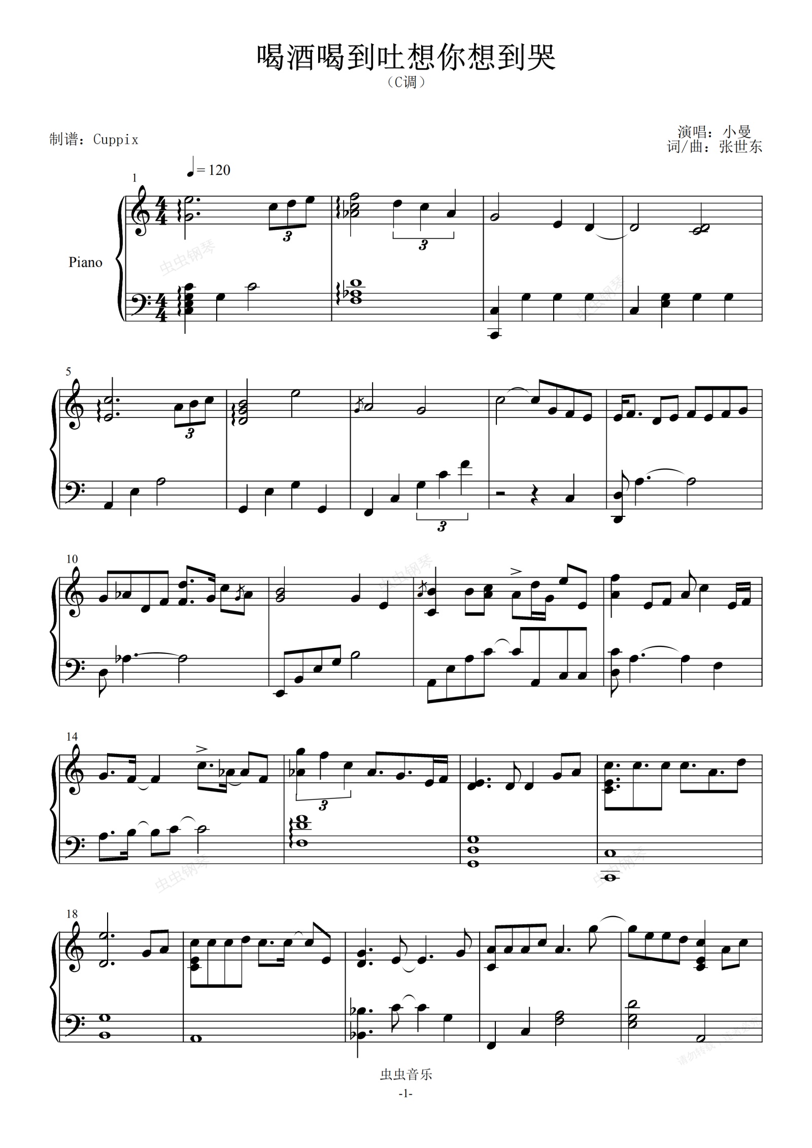 喝酒喝到吐想你想到哭(高度还原-C调)