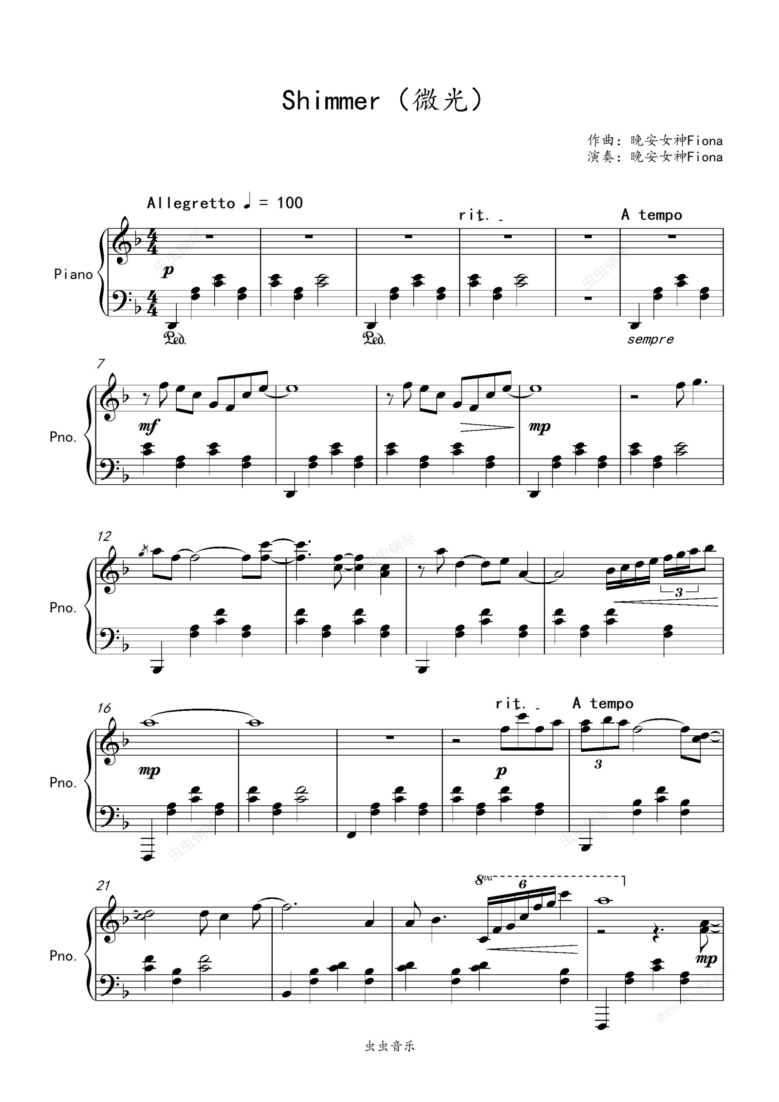 钢琴谱:Shimmer(微光)