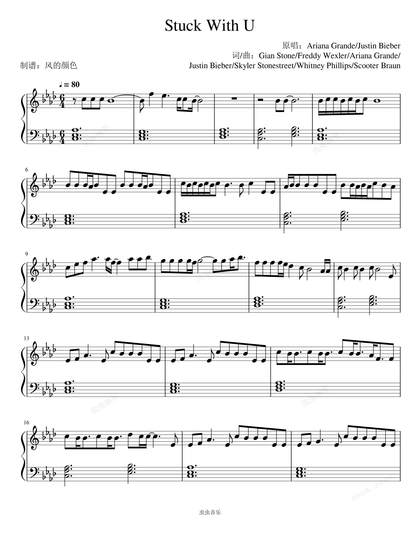 钢琴谱:疫情公益歌曲《Stuck With U》A妹、贾斯汀.比伯 新单