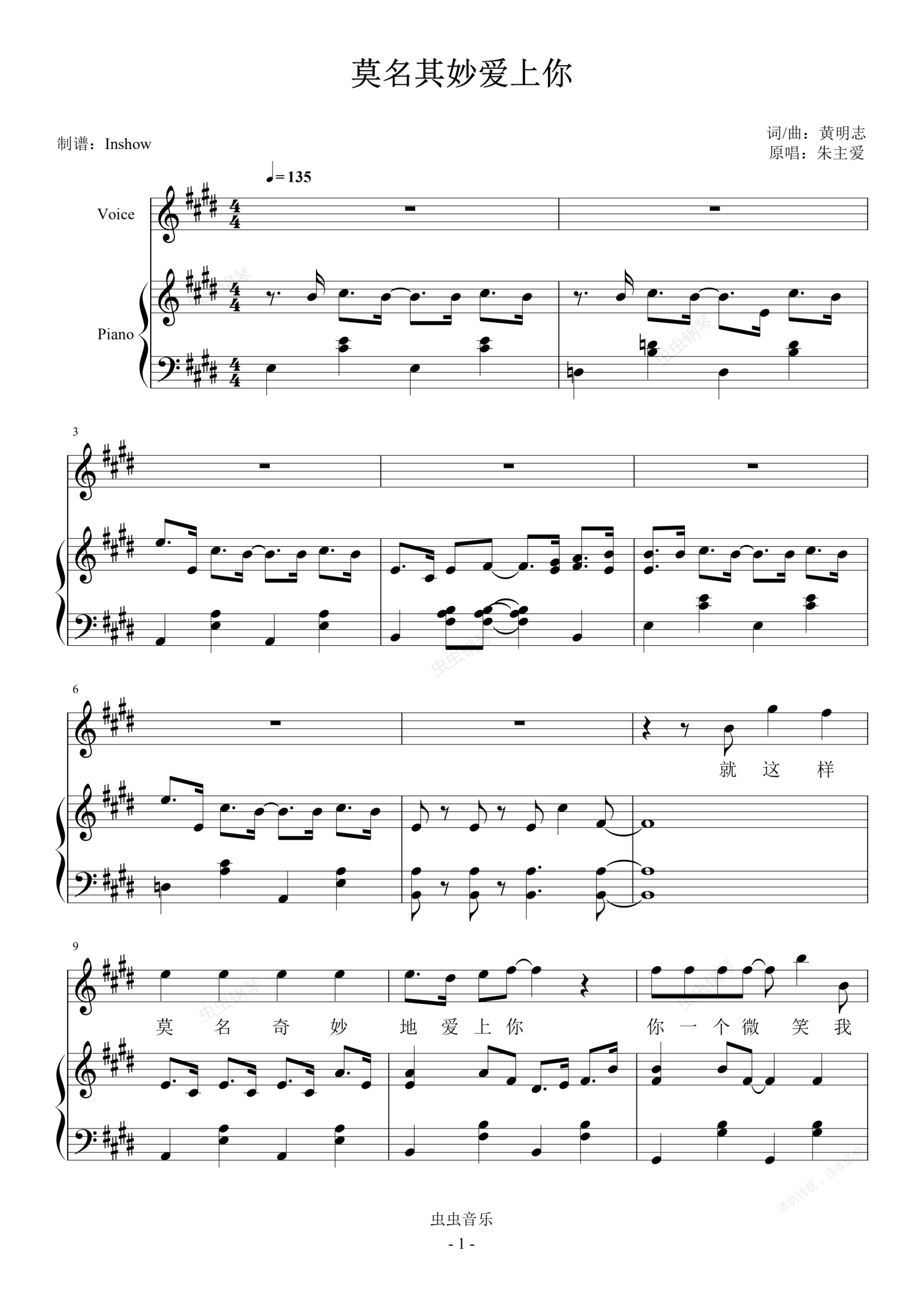 钢琴谱:朱主爱 - 莫名奇妙爱上你【钢琴伴奏谱】