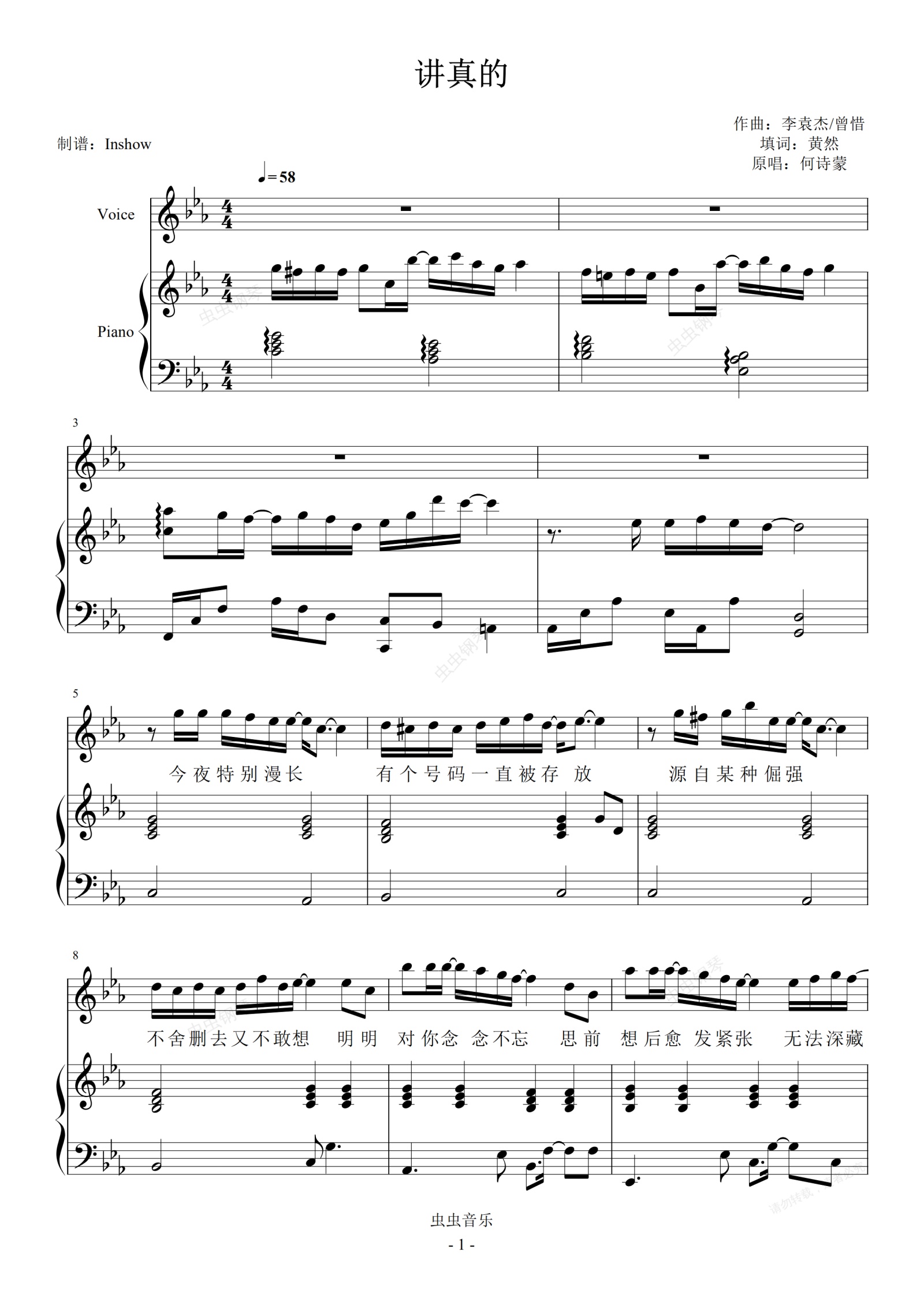 钢琴谱:李袁杰/曾惜 - 讲真的【弹唱谱】