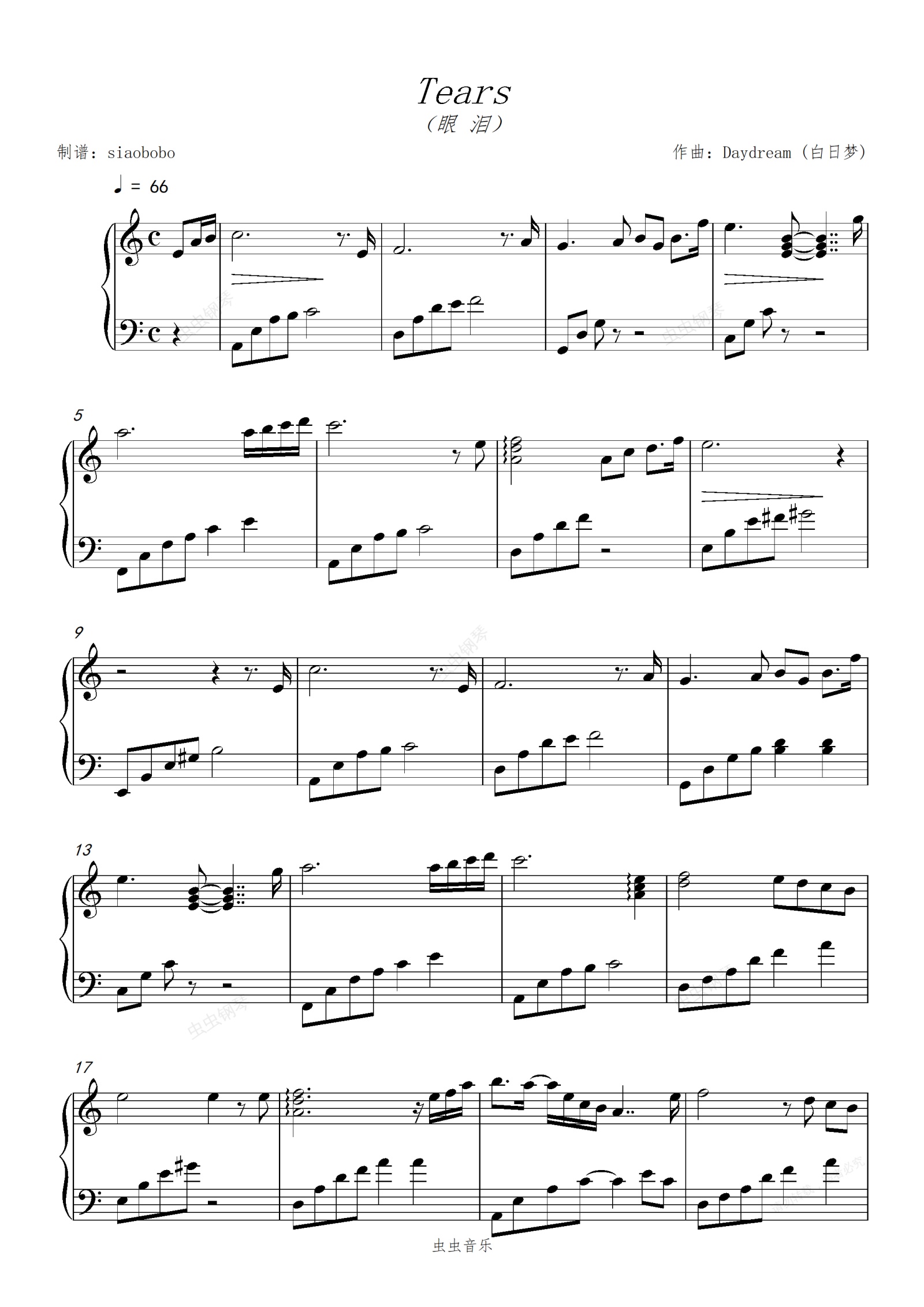 钢琴谱:Tears(高清)-眼泪(C调)