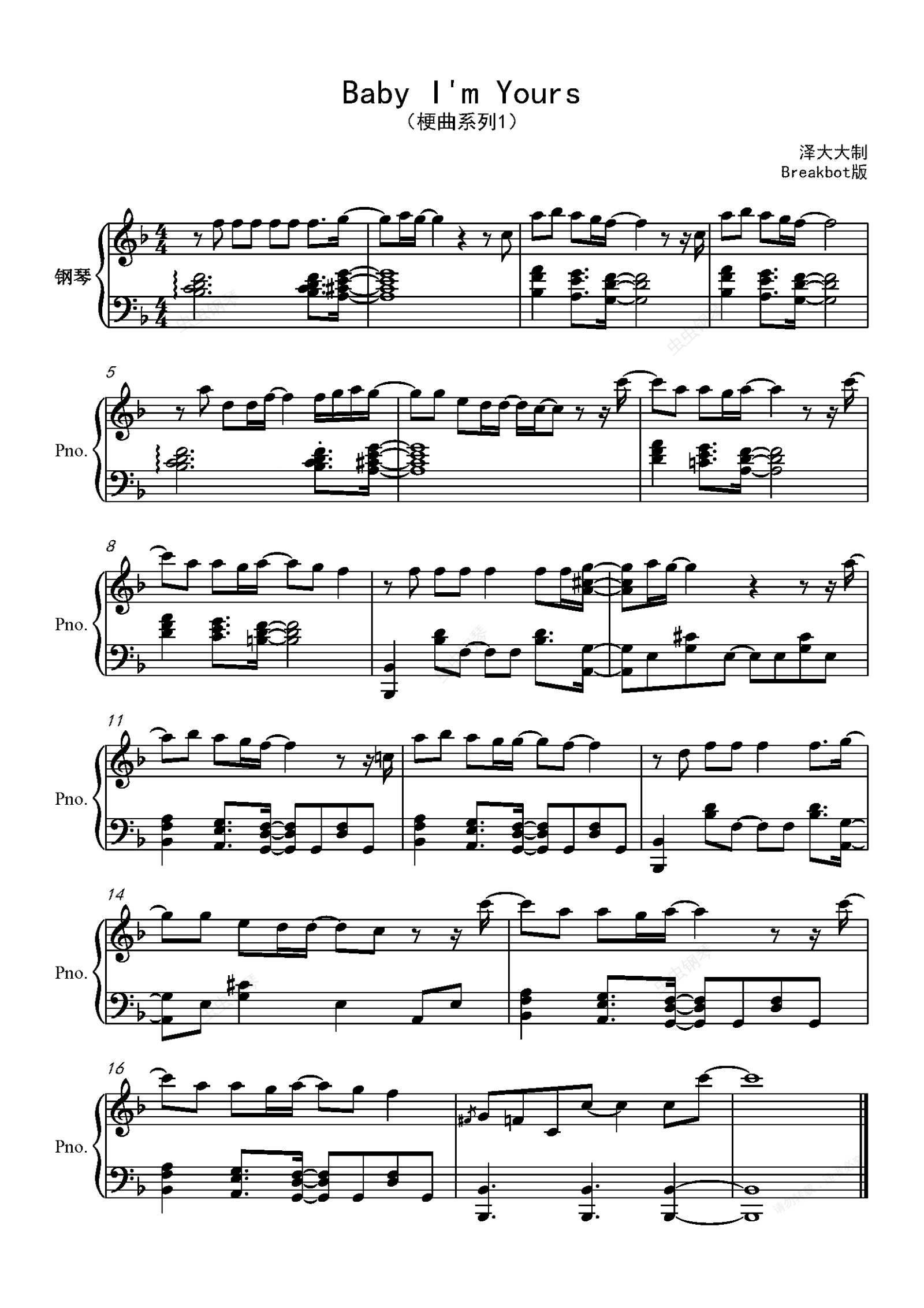钢琴谱:Baby I'm Yours(梗曲系列1)