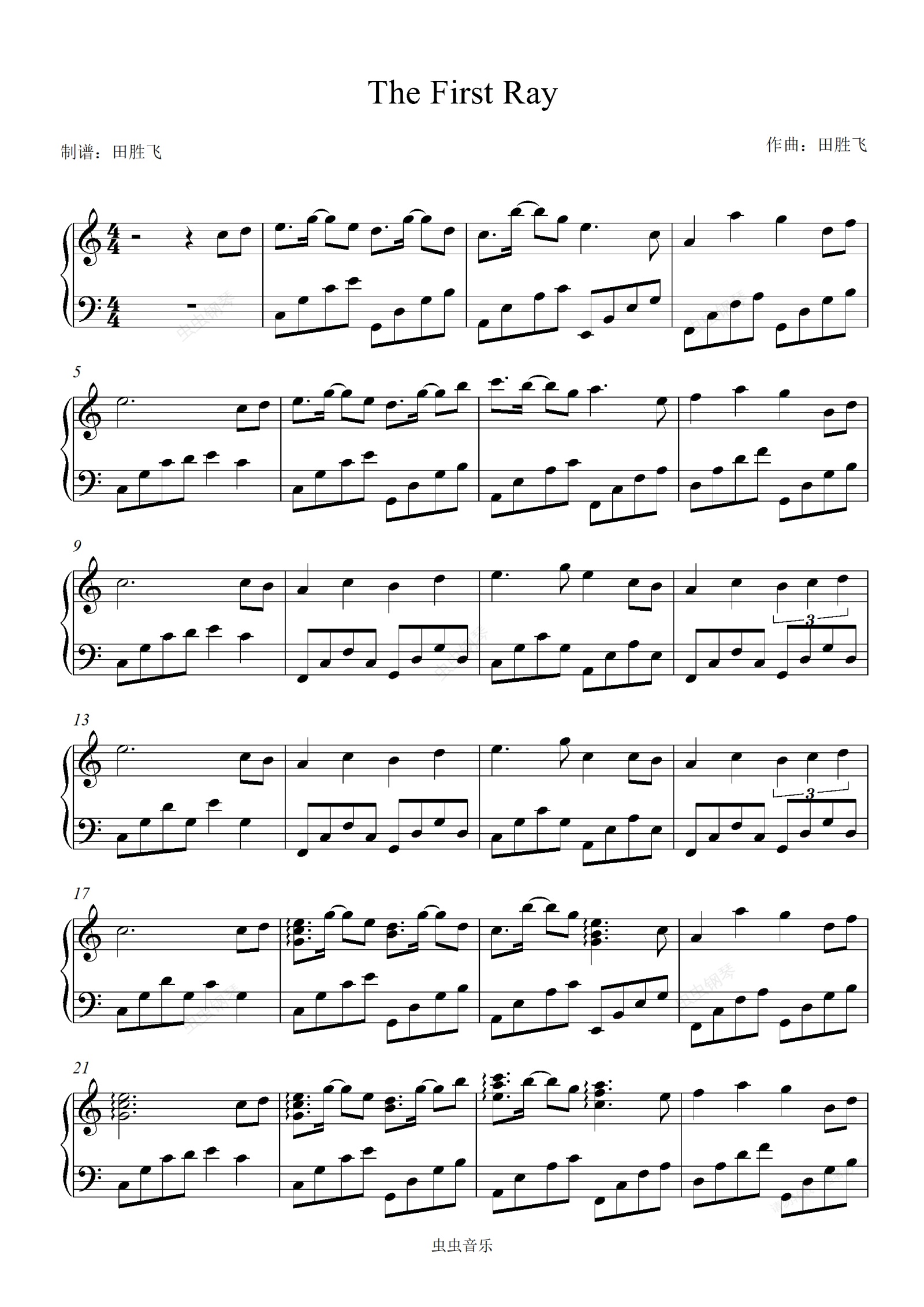 钢琴谱:The first ray-田胜飞 C大调