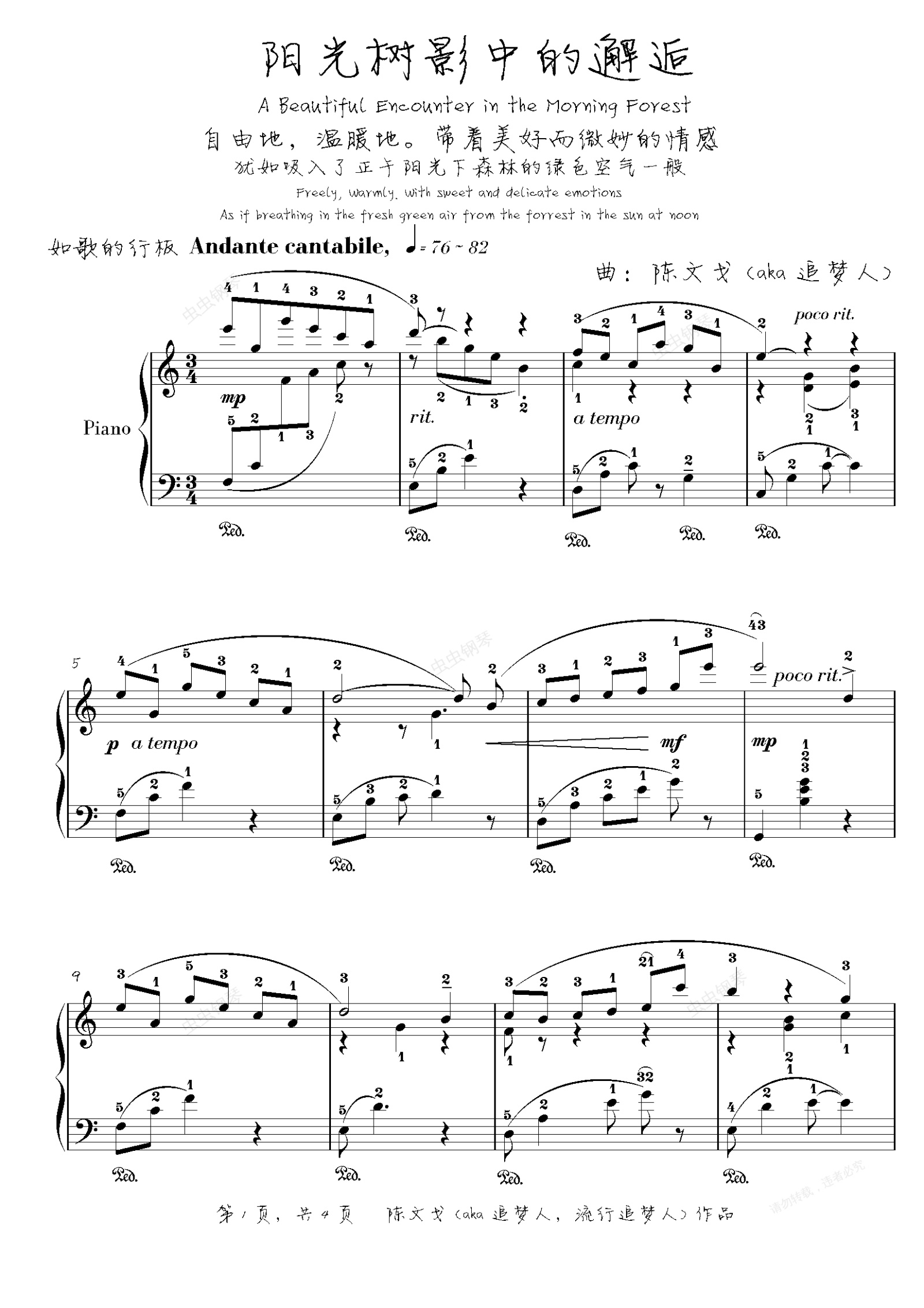 钢琴谱:【治愈向】你呼吸过阳光下绿色森林的清新空气吗?【阳光树影中的邂逅】