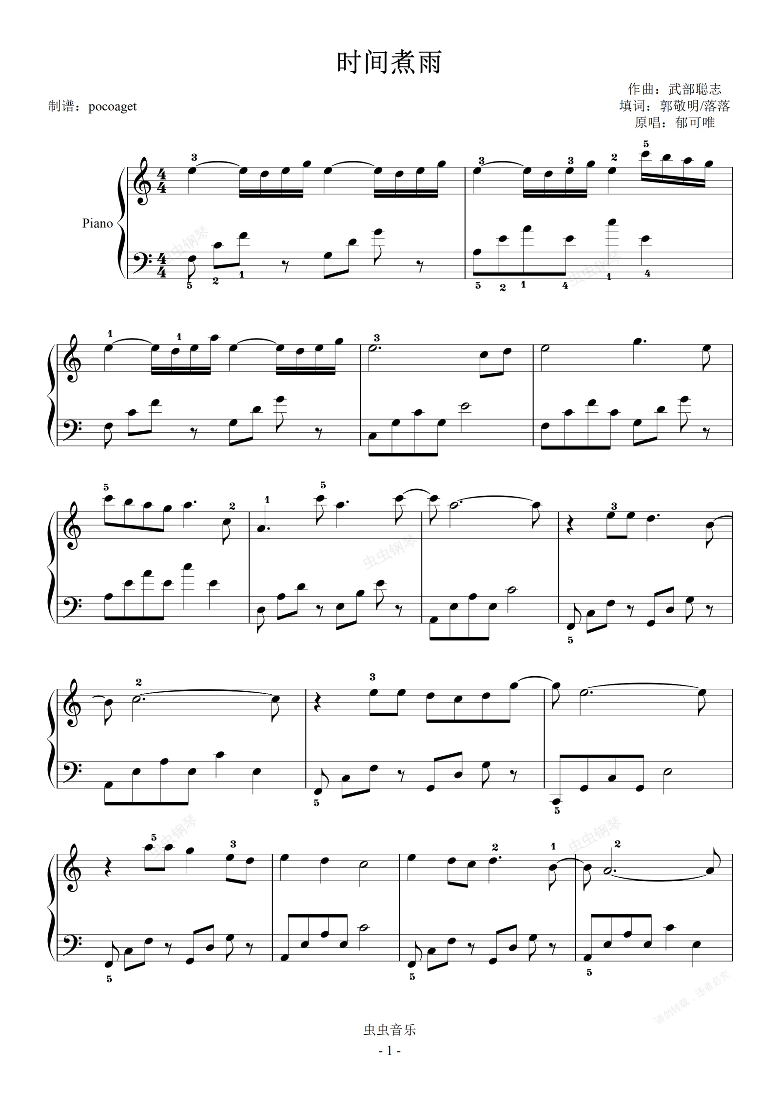 钢琴谱:时间煮雨 初学者完美版